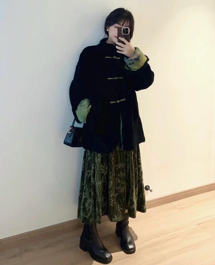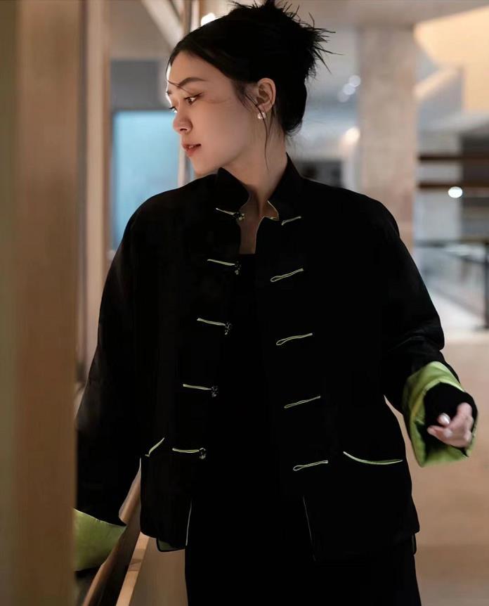 格雷系穿搭穿膩了?那麼今冬不如試試中式老錢風,黑色盤扣黑褂,有種屬於國風獨有的清冷感。高級又耐看,酷颯又矜貴,簡簡單單又大方。黑綠的撞色完全不用擔心會顯沉悶。