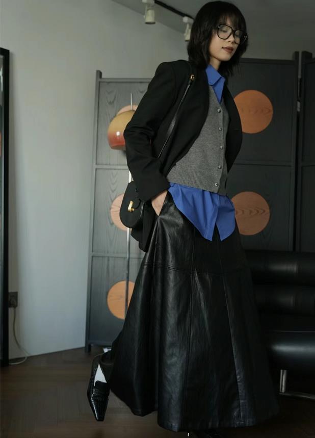受皮質外套的影響,今年皮質半裙也是今冬的主流,特別是a字半裙,百褶半裙,這些裙身版型巧妙遮掩身上的缺點,超級顯瘦。