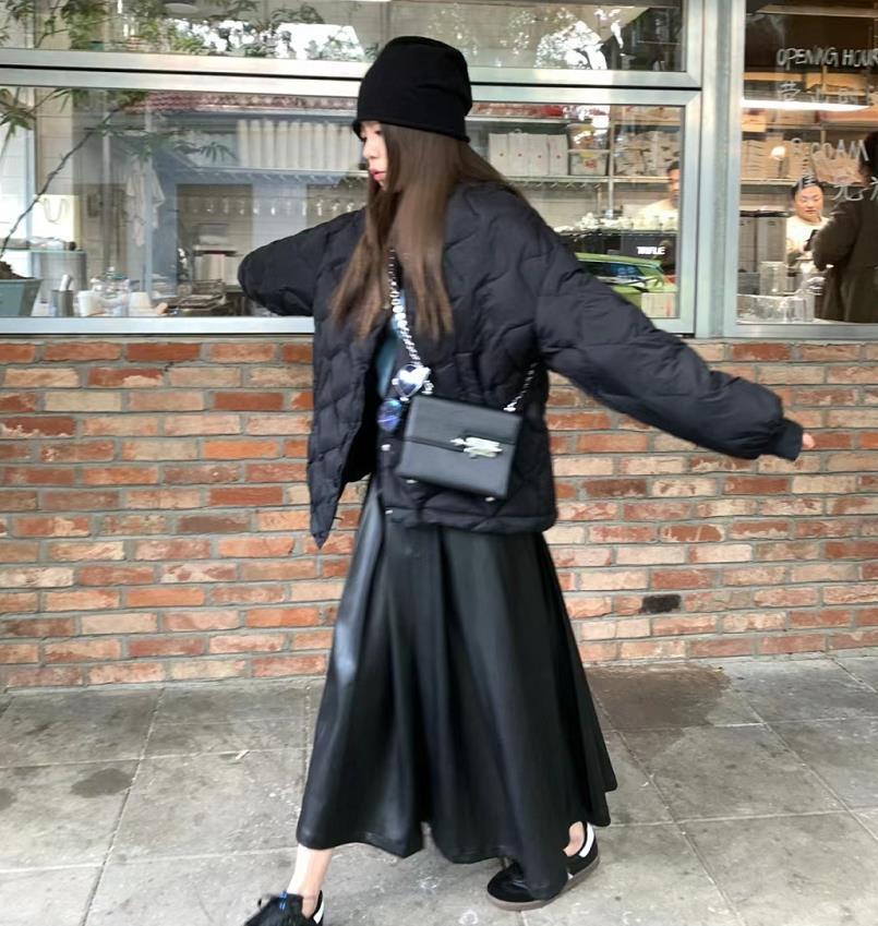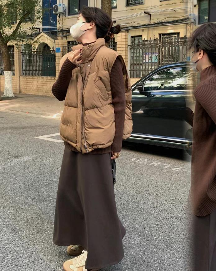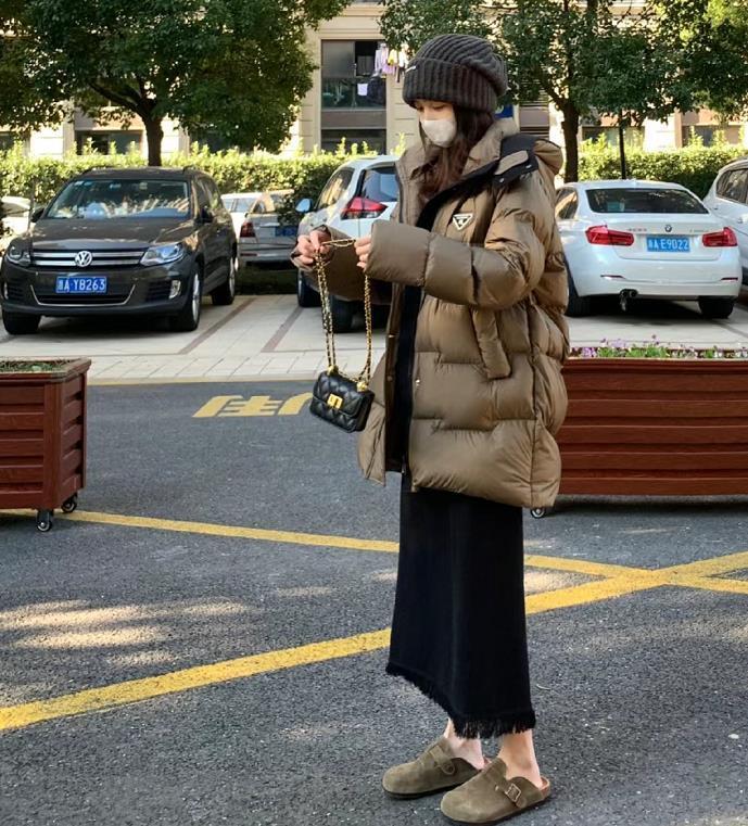 這件羽絨服簡直不要太好穿了,搭配針織半身裙好顯瘦啊,慵懶休閒,還帶着幾分隨意。