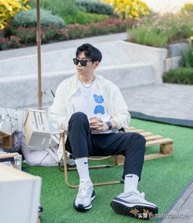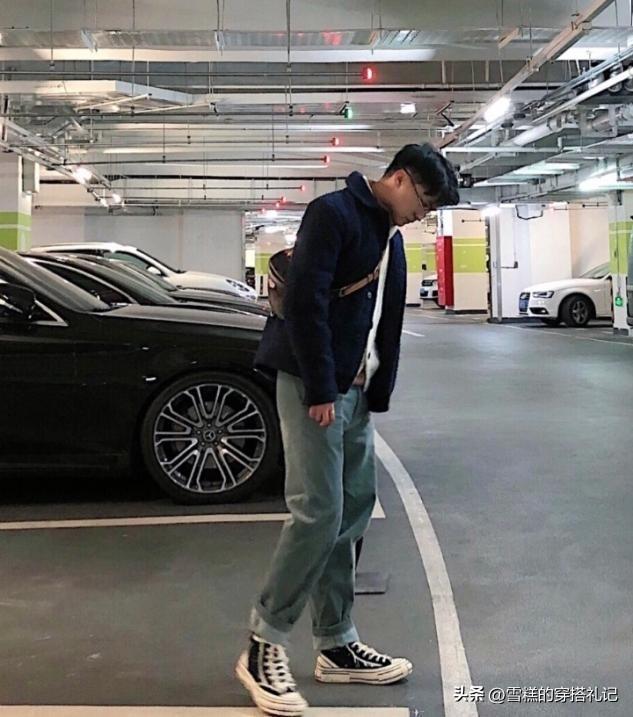 用蘿蔔褲來搭配小白鞋的話,我們可以發揮蘿蔔褲上寬下窄的優勢,比如說腰部和大腿部分的輪廓放寬,那麼,對於身材的包容性就大大的增加了,鞋子的尖嘴曲線爲你平衡男性最需要的腿型顯高顯瘦長度。