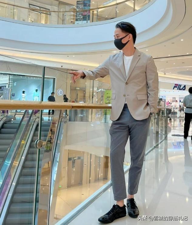 ③西裝褲配小白褲,線條順暢,着裝休閒得體