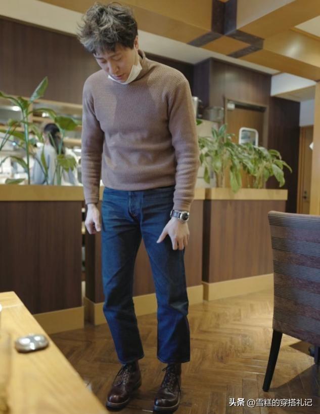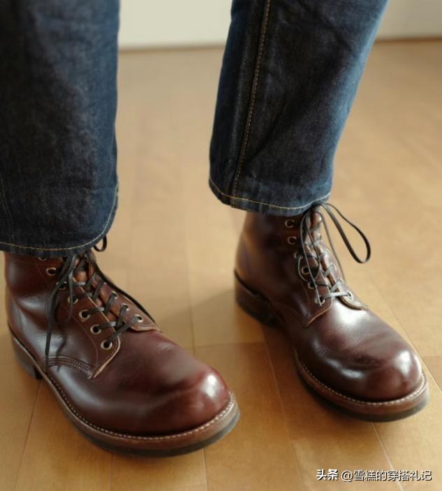 五六十歲的男人穿皮鞋儘量少用一面光的款式,增加綁帶的設計,會有一些馬丁靴的即視感,優化了鞋子表面的立體度,穿衣選擇也會更加的豐富,很好的避開了年齡堆砌。