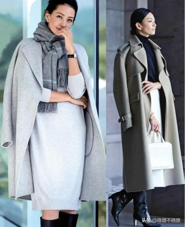 長款大衣基本上都是大領口和翻折領的款式,可以組合小高領的內搭,在低溫的時候也可以用圍巾來增加領口部分的立體度,讓大衣敞開穿搭的時候,更有造型的亮點,一雙皮靴或者是高跟靴的融入,讓身材曲線看起來更完美。