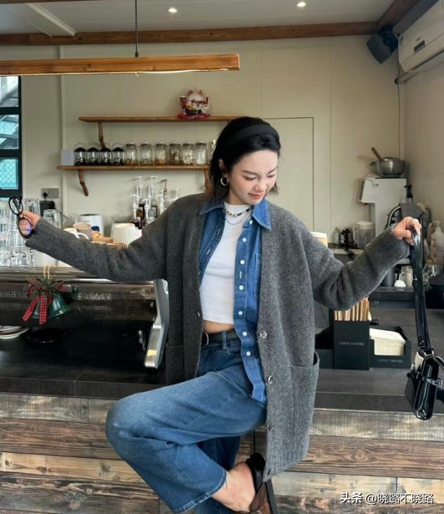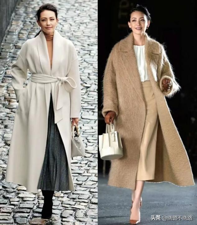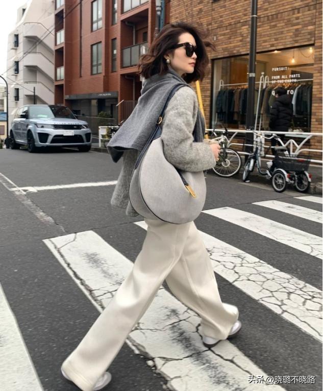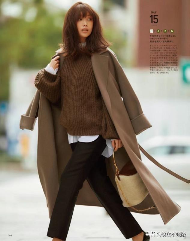 衣服和褲子都延長的穿法,是長款線條的雙倍疊加,比較適合個子在165以上的女人去嘗試,尤其是褲子的延長穿法,讓拖地褲突然爆火了起來,不露腳踝的穿搭纔有安全感,秋冬保暖纔是王道。
