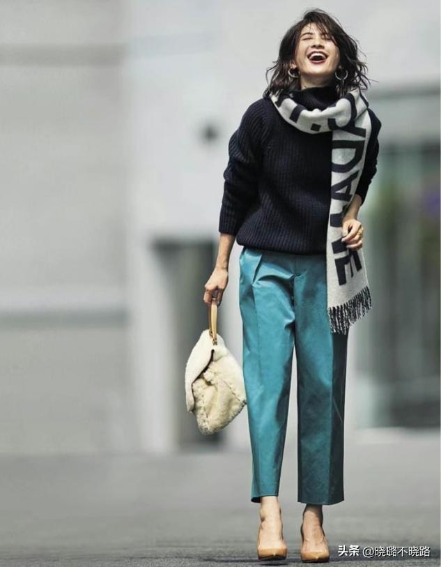 相較於圍巾疊加領口的穿法,我們在腰線和腿部反而要做減法工作,褲子不增加花色,腰線部分不疊加衣物,這樣才能夠呈現出讓你引以爲傲的女性身材曲線優勢。