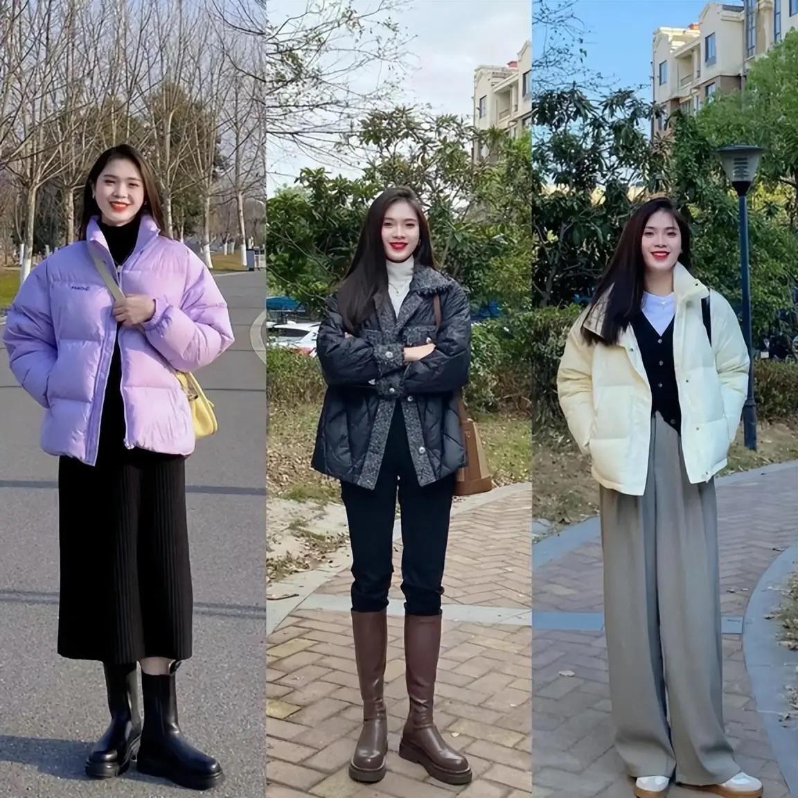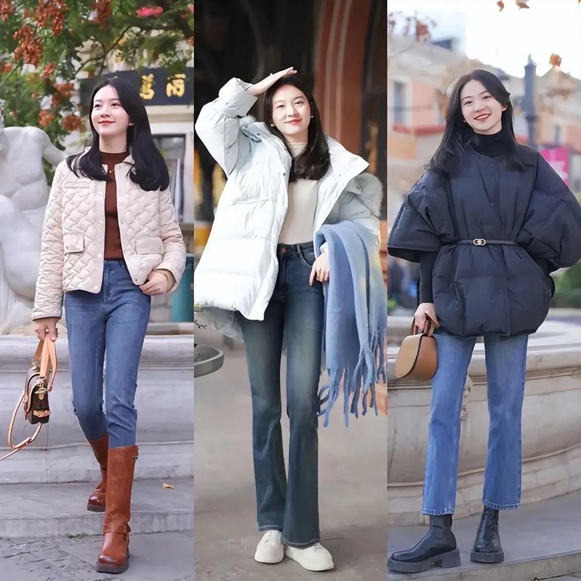 選擇九分直筒牛仔褲的時候,儘量搭配比較硬挺的面料。帶有筋骨感的牛仔九分褲,對於雙腿的修飾性更強。我們配寬鬆的斗篷風羽絨服,保暖顯高還洋氣。