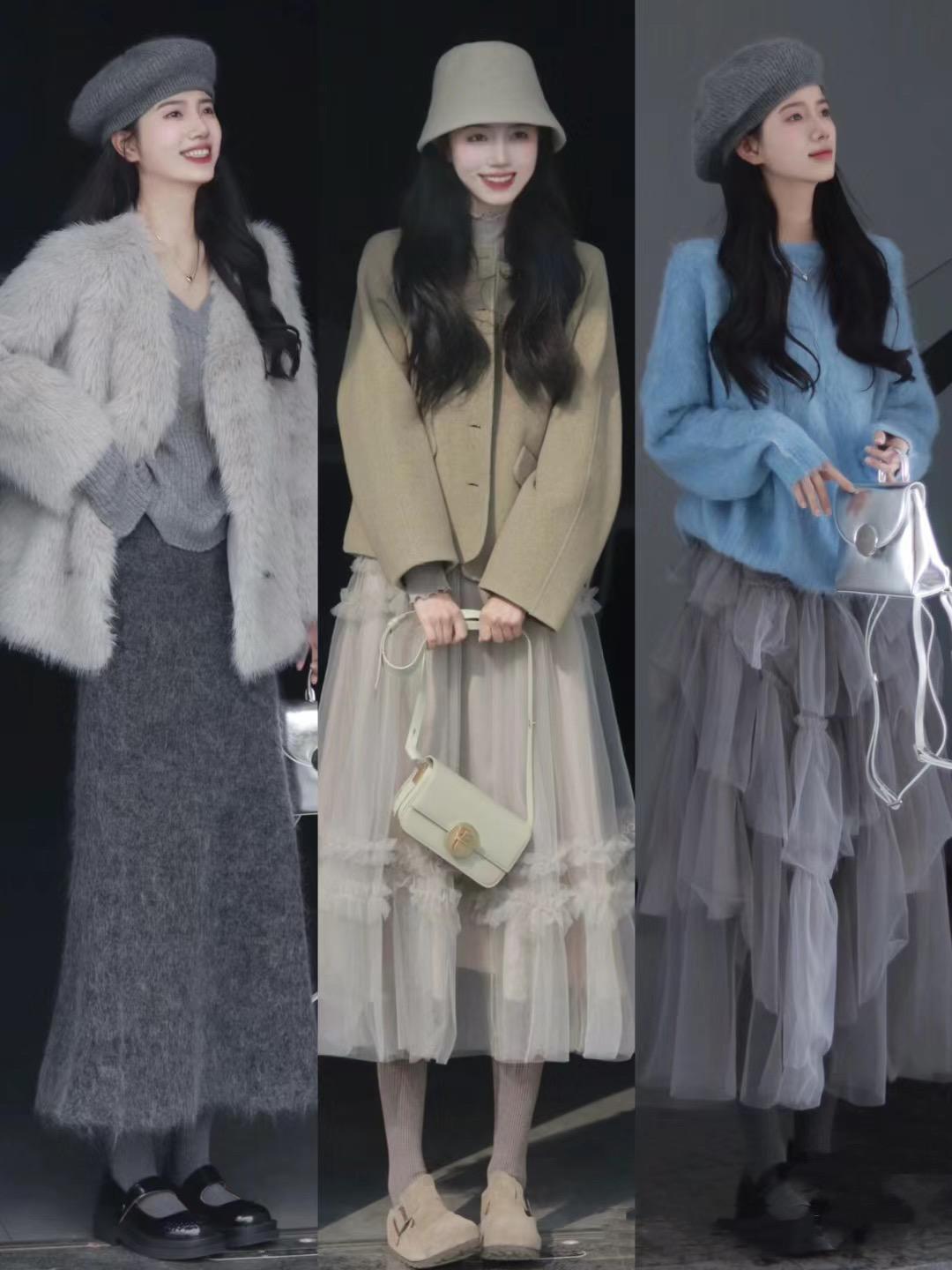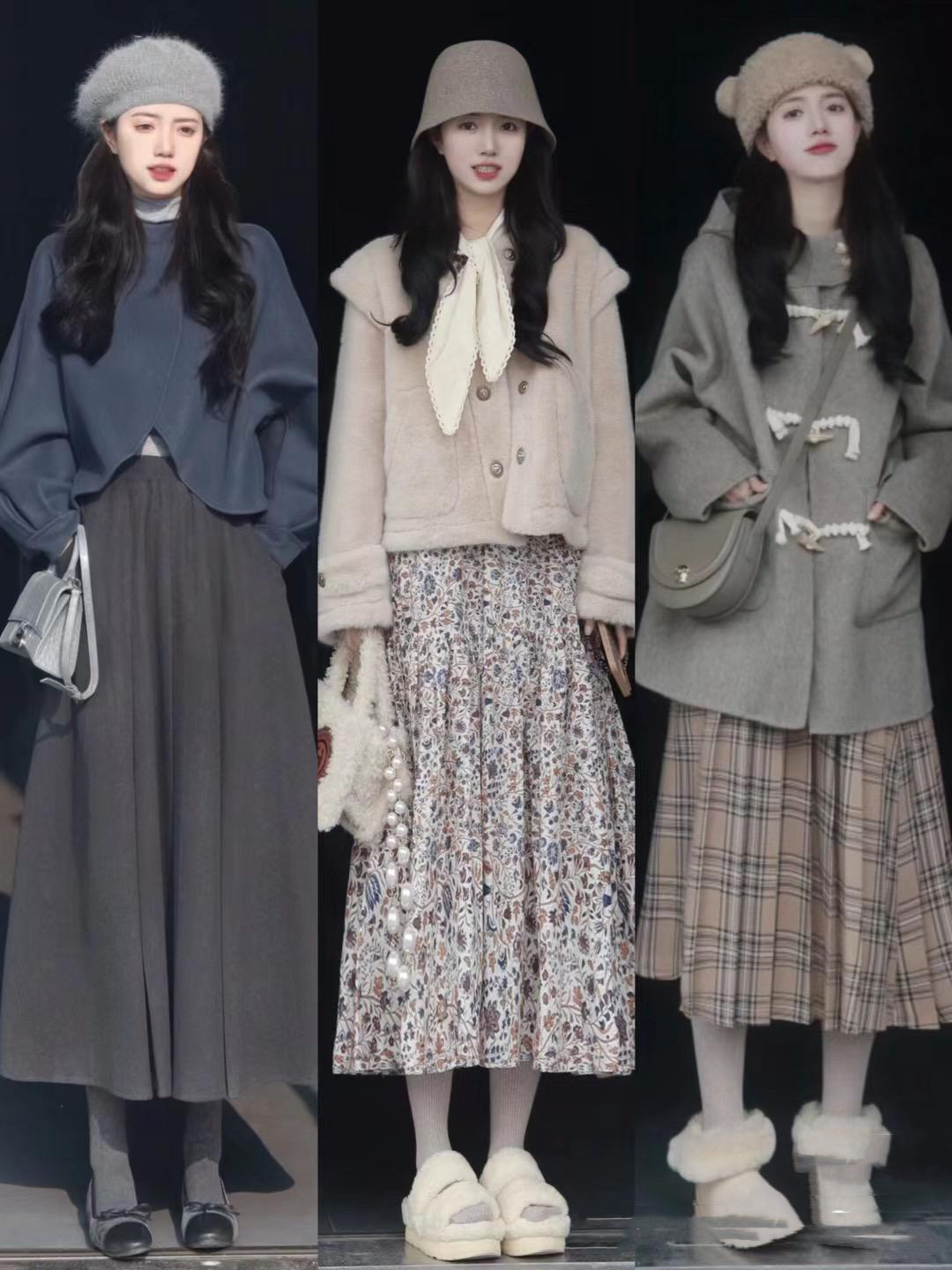 用短款的外套,來搭配鄰近色的高腰半身裙,溫柔大氣又透着幾分浪漫。尤其是高腰的A字形半身裙,細膩的毛絨質地、透着冬日的溫暖,也是百看不厭。