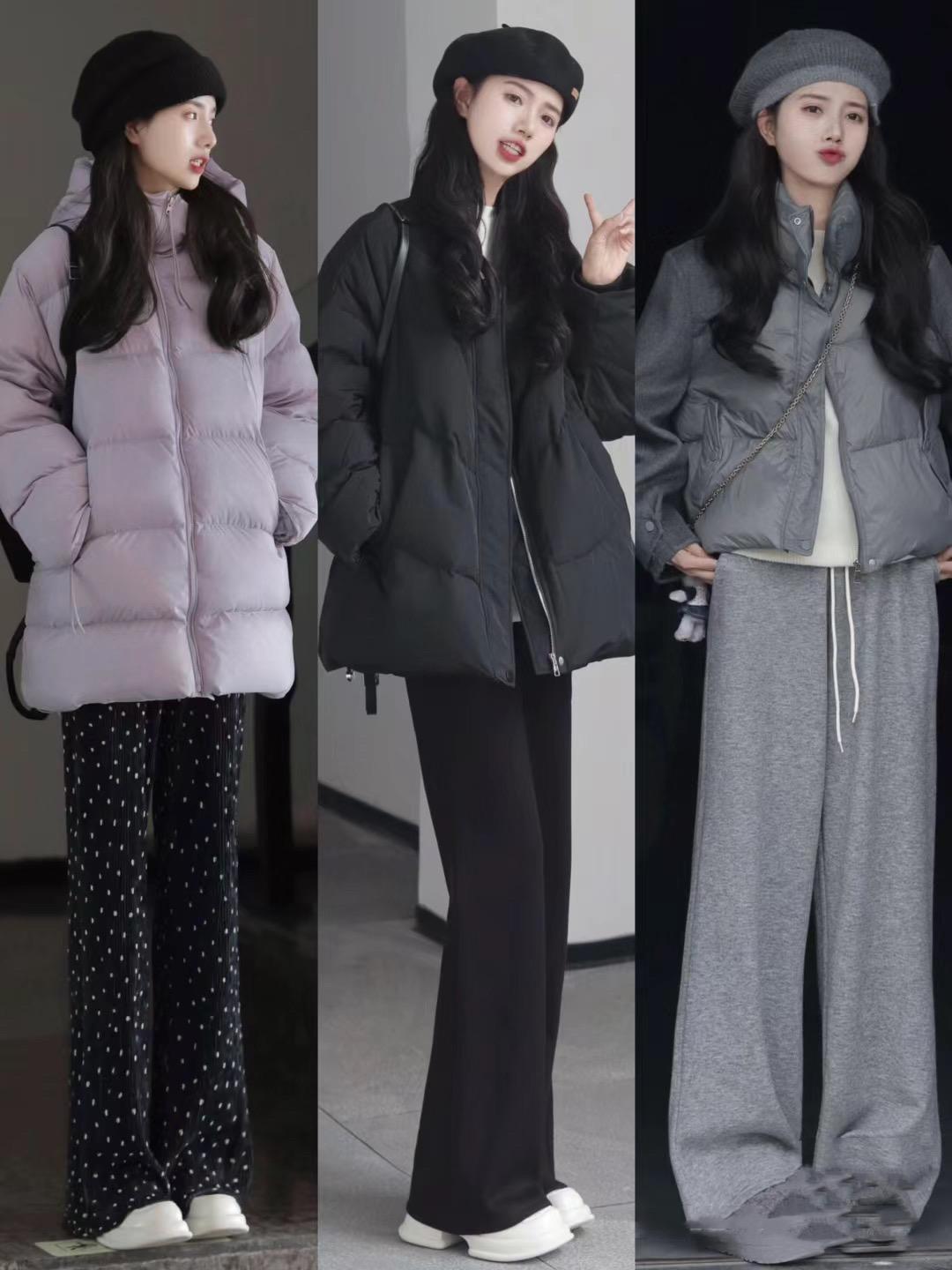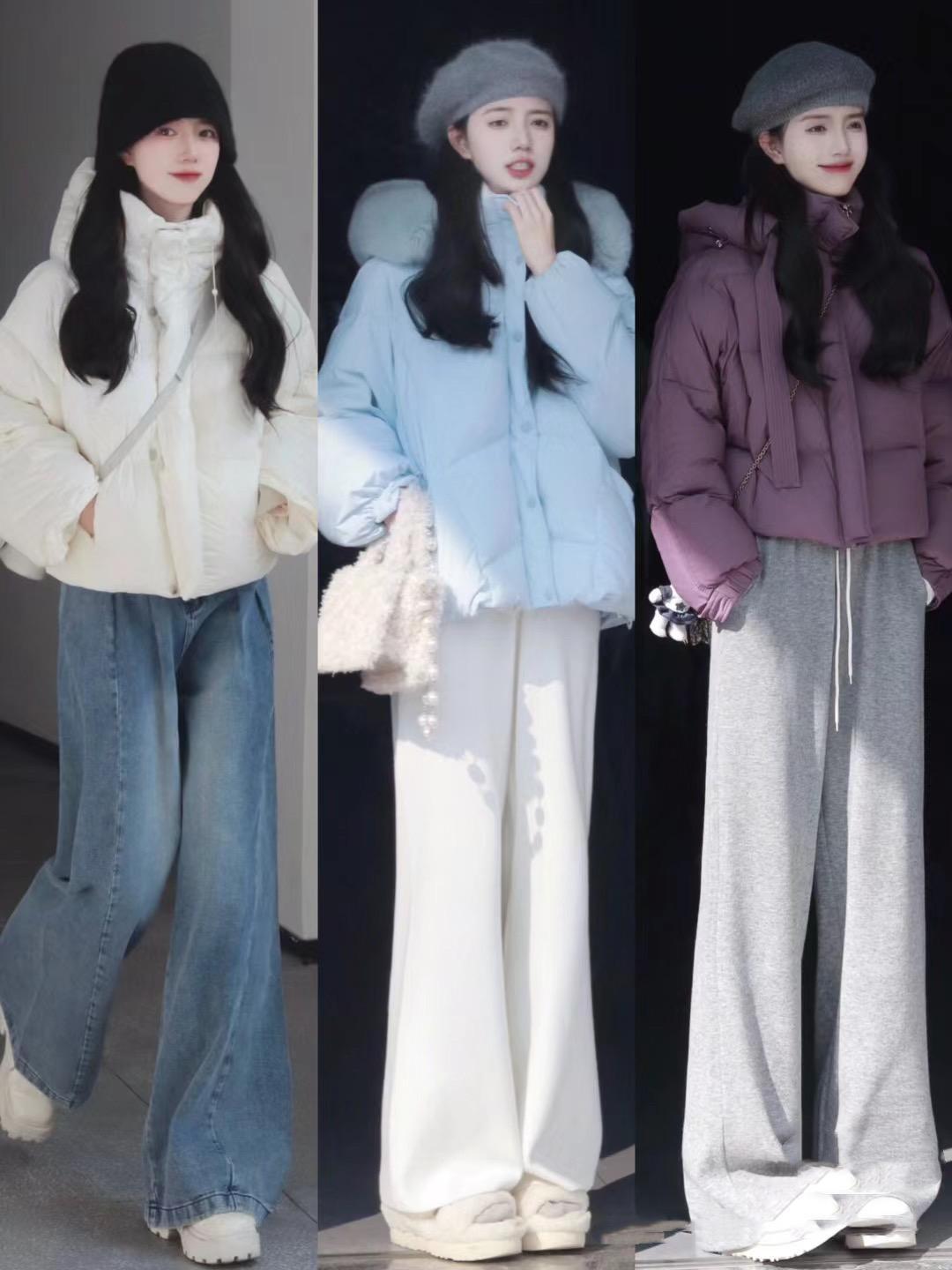 簡單幹淨的穿搭,也可以表現出清晰的層次感。短款的羽絨服,可以配高腰的闊腿褲來穿着,上短下長的組合、有一種時尚又俏皮的美。