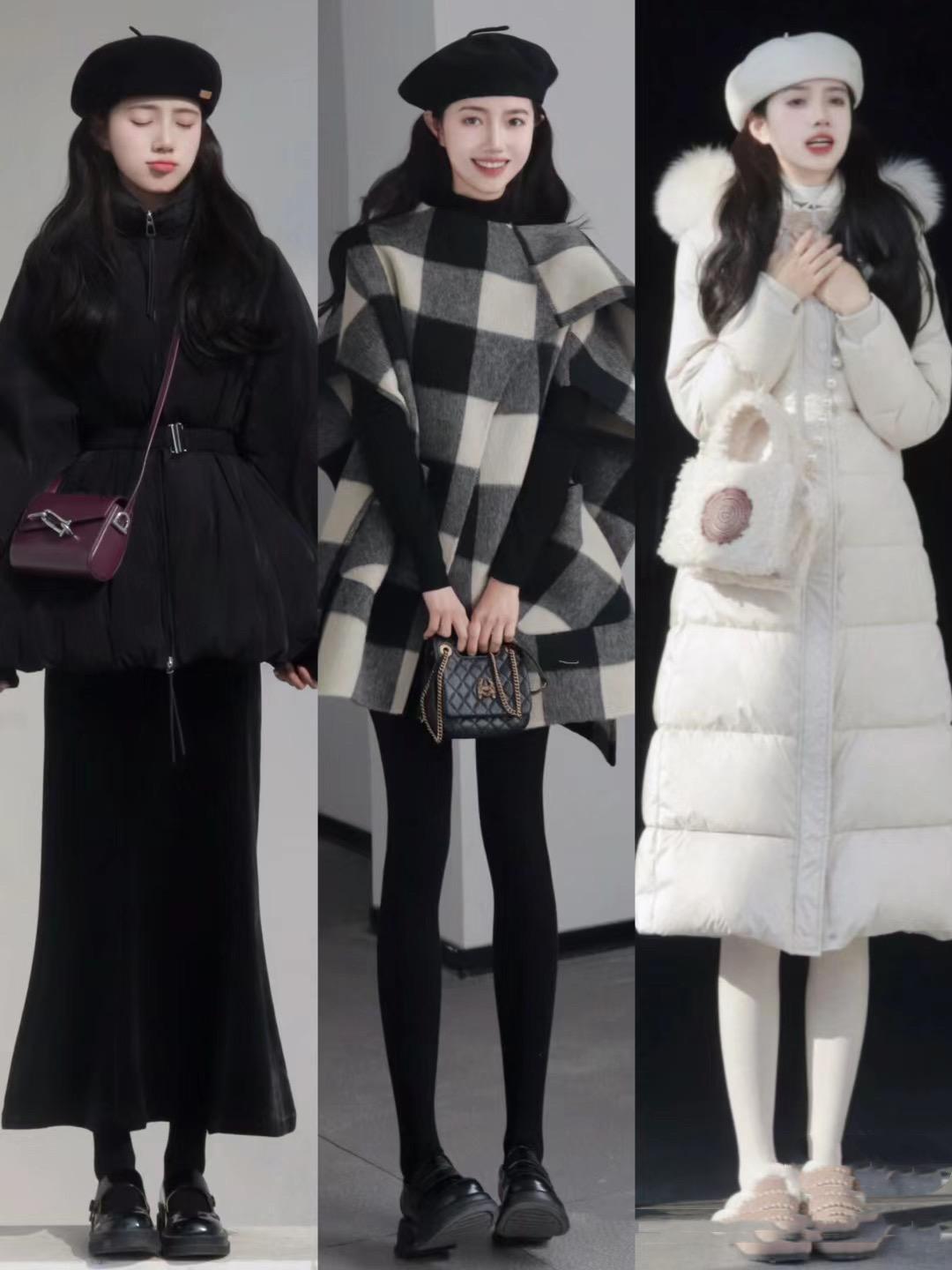 黑色系的羽絨服、比較寬鬆舒適的款式,可以配高腰的A字形半身裙,優雅浪漫又充滿了時尚風情。以亮色系的內搭進行疊穿,配高腰的A字形半身裙,溫柔又大方。