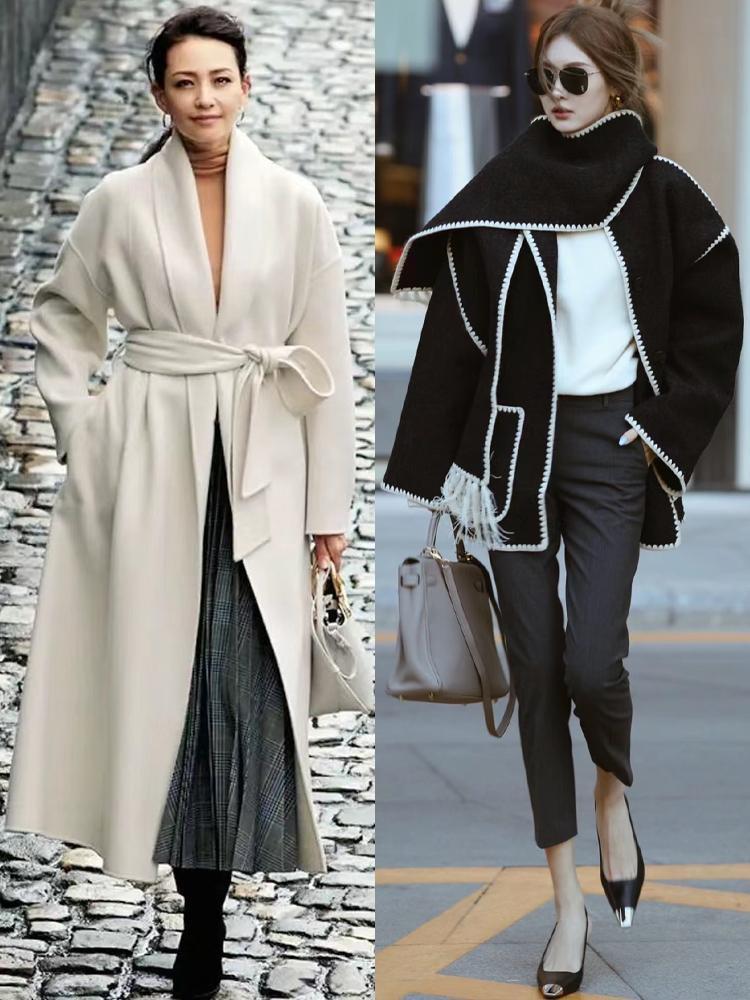 日常的穿搭中,寬鬆的大衣或者外套,都可以配修身的內搭。即便是經典的黑色打底衫,搭配稍微寬鬆的帶外套,也可以形成層次清晰、又很貴氣的美。