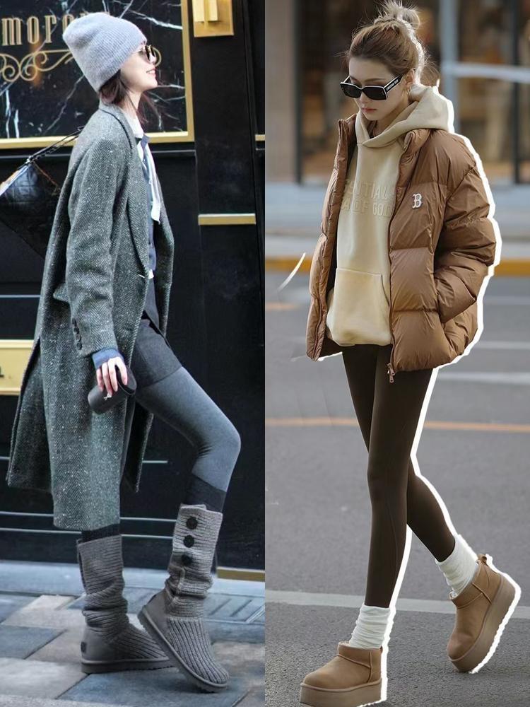 彈壓力比較強的鯊魚褲,還可以顯得雙腿線條更加纖細。日常的搭配中,這種緊身的鯊魚褲配寬鬆的羽絨服,就非常利落顯瘦,搭一雙厚底的雪地靴,保暖性很強也很顯高。