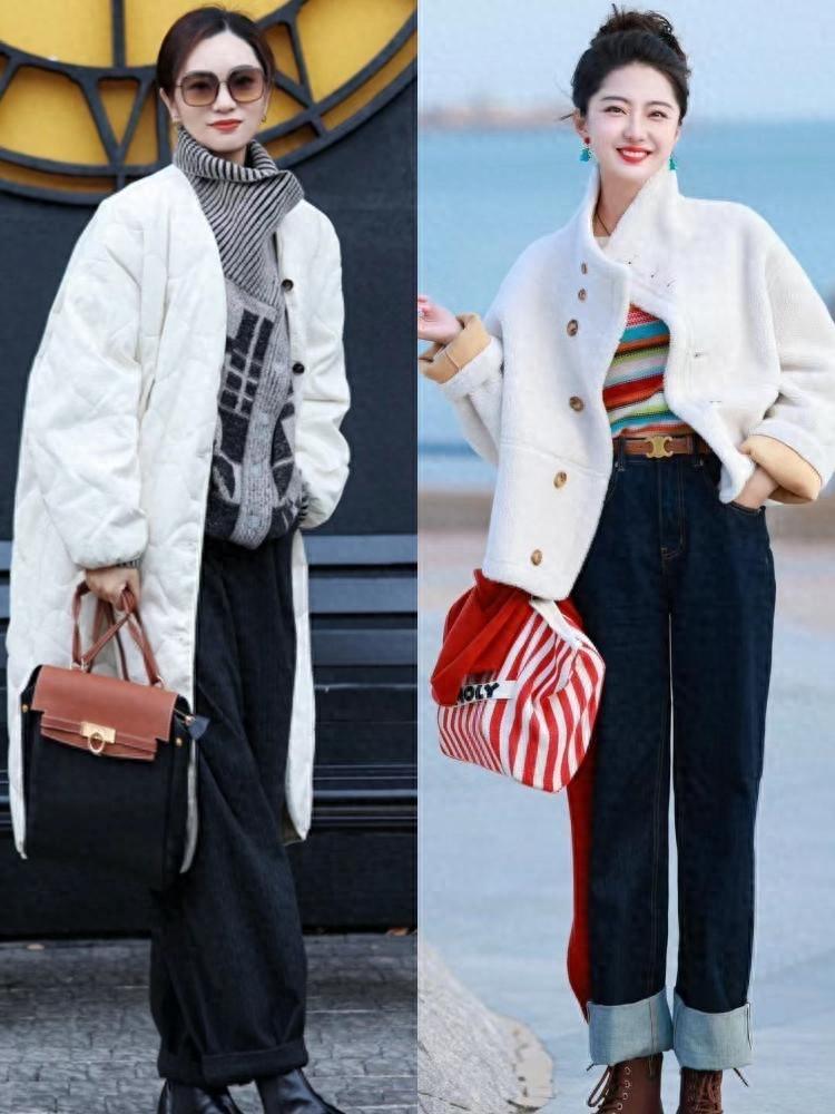 比如寬鬆的毛呢外套,我們可以搭配修身的打底衫、或者修身的錐形褲。修身的打底衫,可以修飾上身線條,看起來不那麼厚重。修身的錐形褲,則可以顯得雙腿更加輕盈。