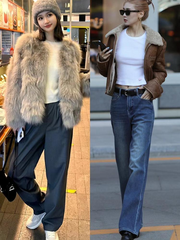 不管是皮毛外套,還是皮衣外套,我們都可以搭配相對寬鬆的版型,配色彩明朗的白色T恤,層次感清晰。搭一條直筒的牛仔褲,又酷又美顯腿長。冬天裏的直筒牛仔褲,也是修飾身材的關鍵。