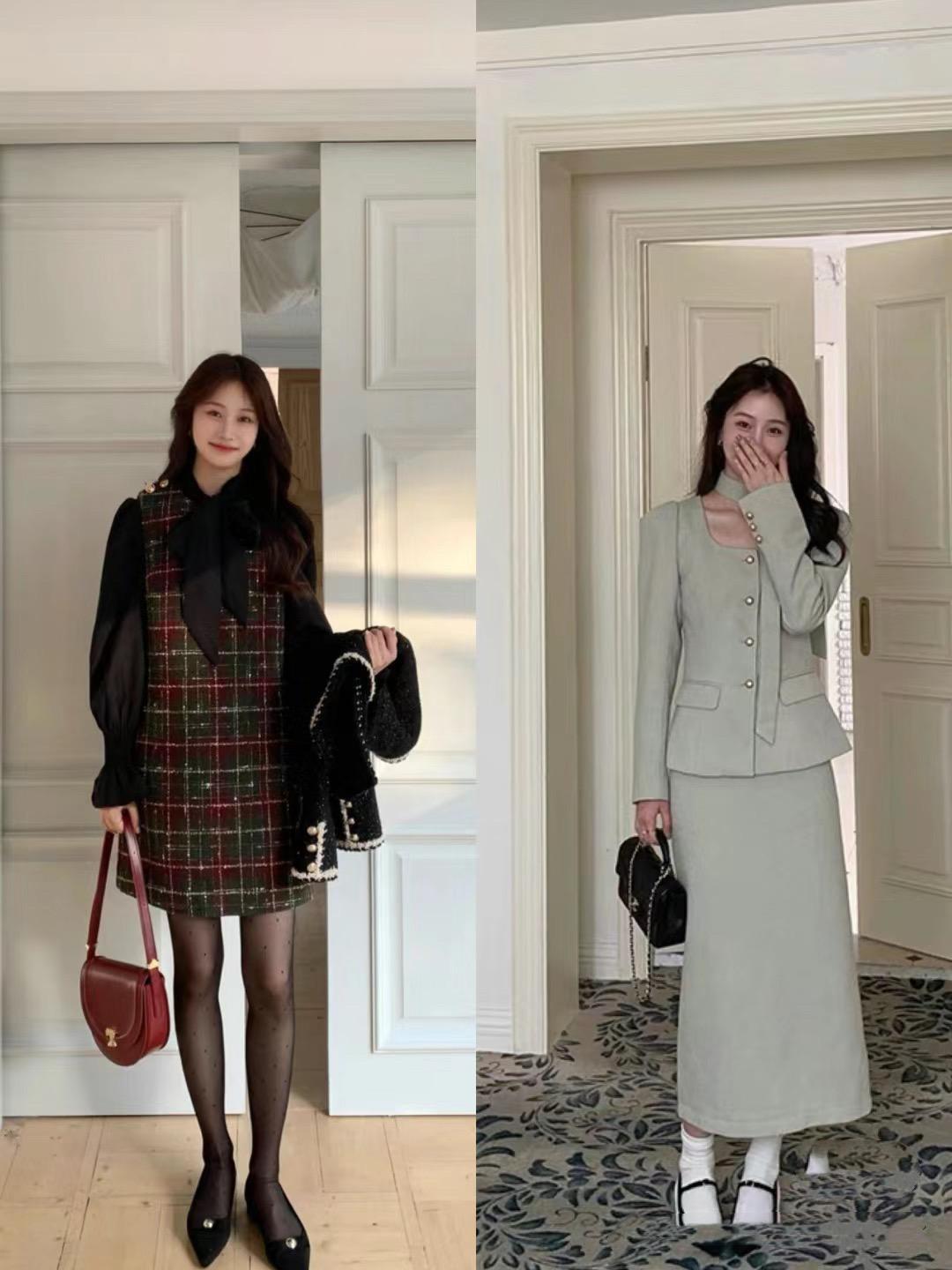 我們日常的穿搭,更多的是一種舒適隨性的風格。新年的時候,則可以嘗試更加精緻的套裝。比如小香風套裙,或者復古風的套裙,都可以塑造出高級感。