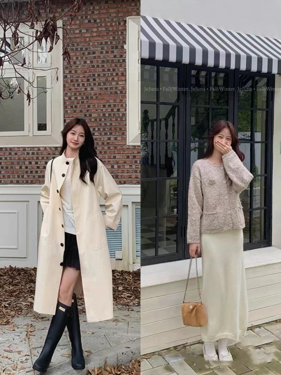 就像韓系大衣的隨性與自由,改良版小香風外套的精緻與復古。韓系風格的大衣,繫上一條腰帶小個子就可以駕馭。改良版小香風外套的精緻,配闊腿褲就更加大方。