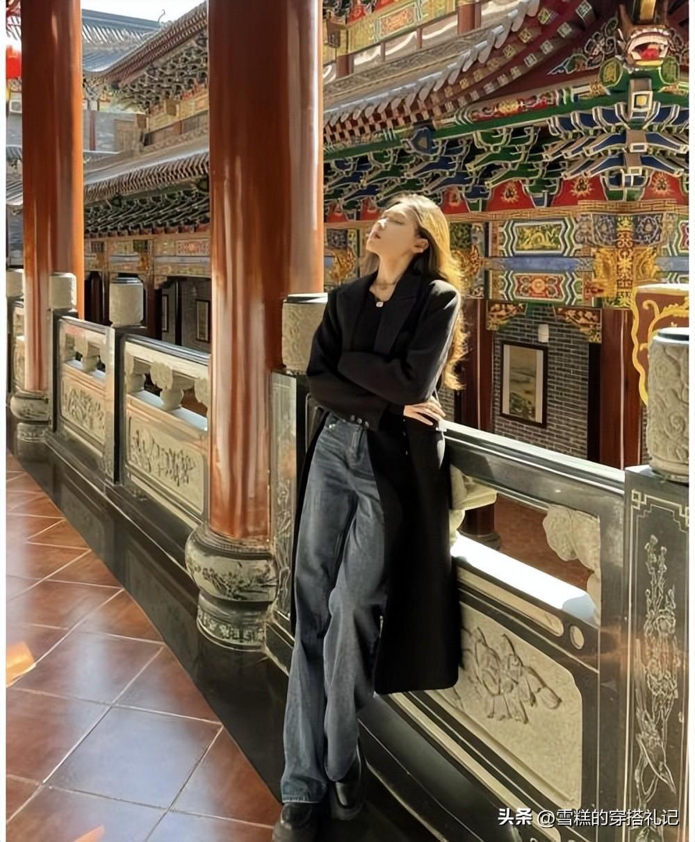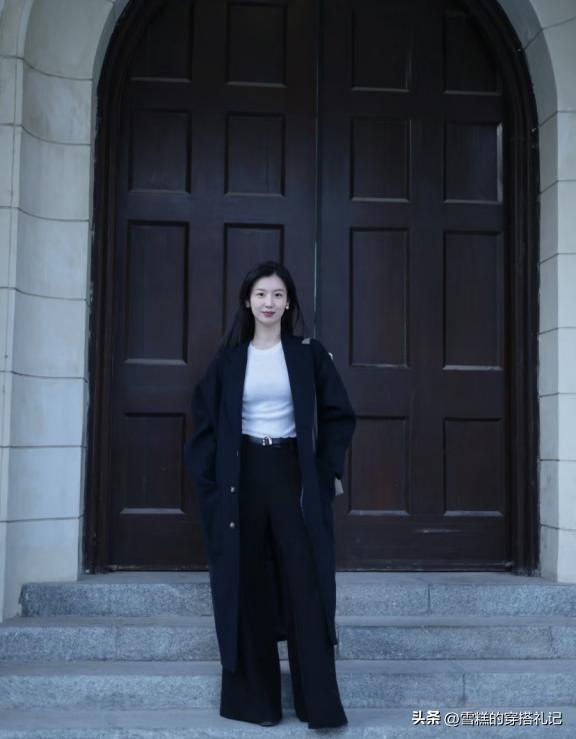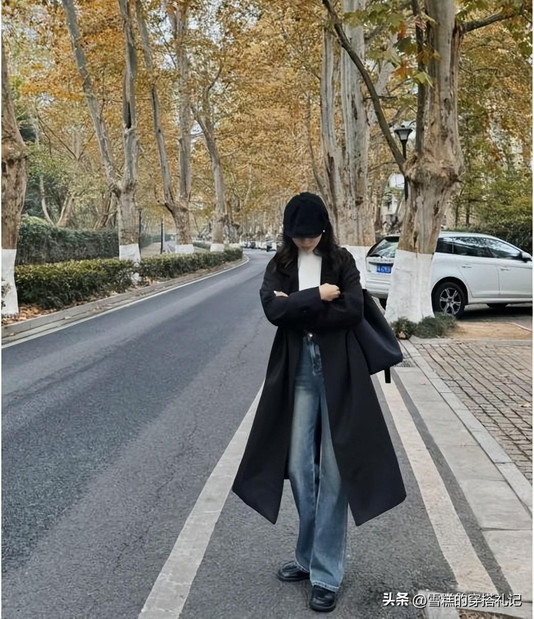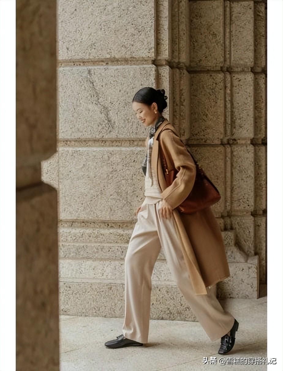 注意,長褲+大衣的穿搭只是讓樂福鞋的存在沒有那麼強勢,但並不代表要選擇非常寬的闊腿褲,褲筒太寬會埋沒樂福鞋的存在感,這樣就體現不出鞋子搭配的時髦度了。