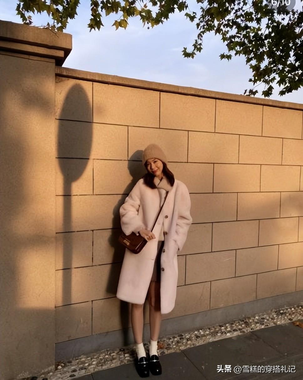 2、樂福鞋+短襪讓大衣更減齡更少女