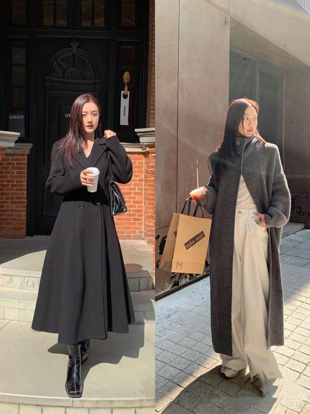 氣場十足的長款大衣,也可以搭配高腰的闊腿褲來穿着。寬鬆的褲筒、具備了更強的包容性。我們用灰色長大衣配寬鬆闊腿褲,溫柔又有力量。