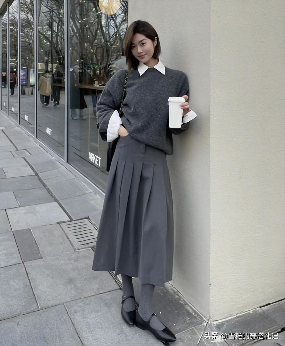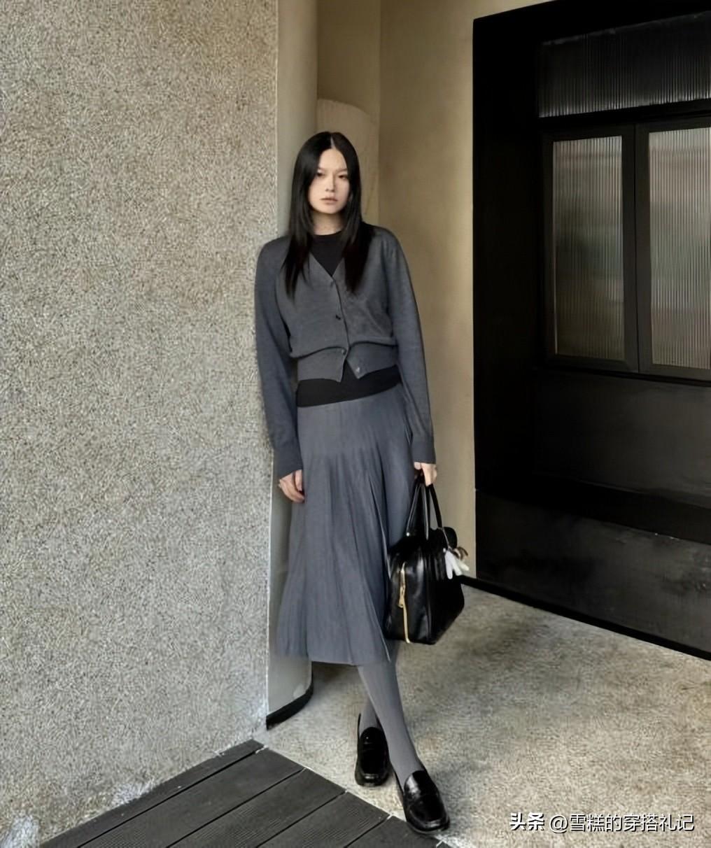 並且灰色系穿搭所包含的年齡跨度大,灰色是個包容性很強的顏色,它的風格隨着單品的設計變化而變化,因此不論是少女還是淑女都能在灰色系穿搭找到屬於自己年齡的穿搭定位。