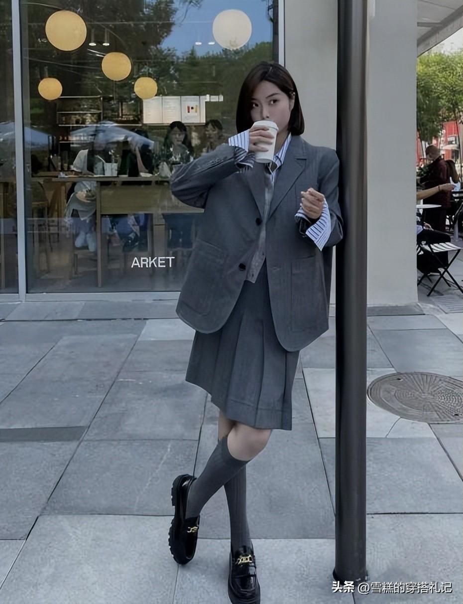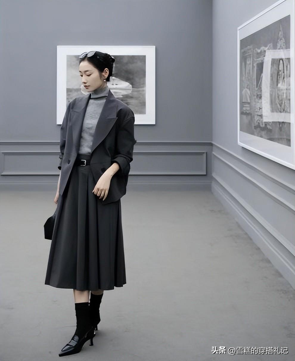 最後再來說說不同場合的灰色穿搭應該怎麼穿,職場中講究幹練利落的穿搭,所以我們可以選擇省事的西裝套裝,如果怕套裝太沉悶,可以選擇裙裝做下裝的套裝哦。