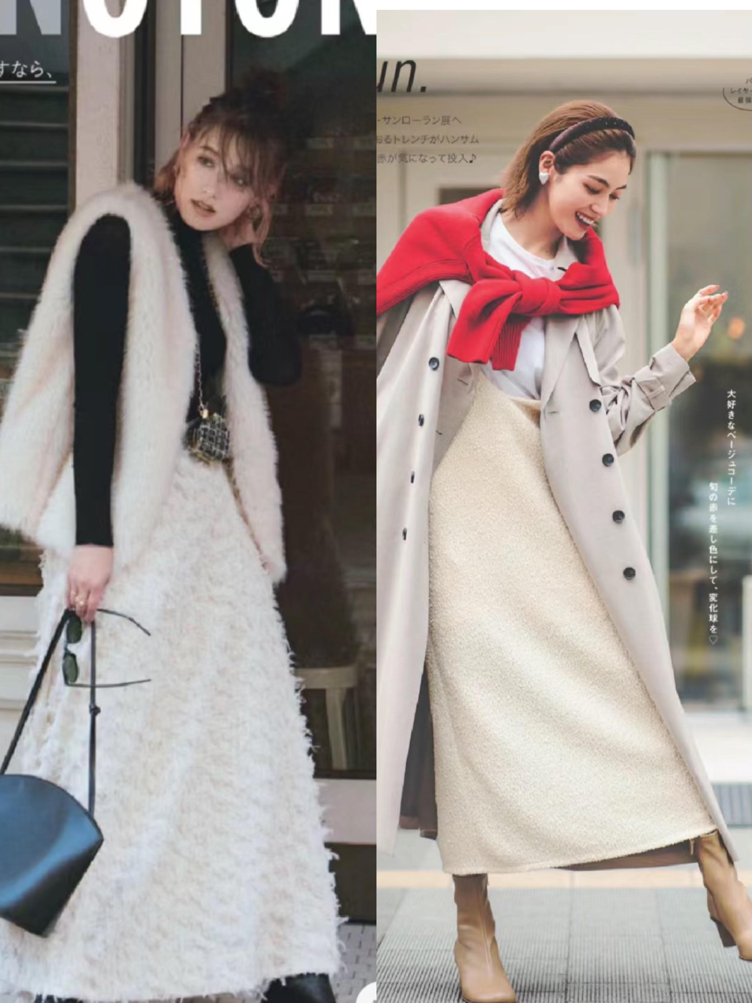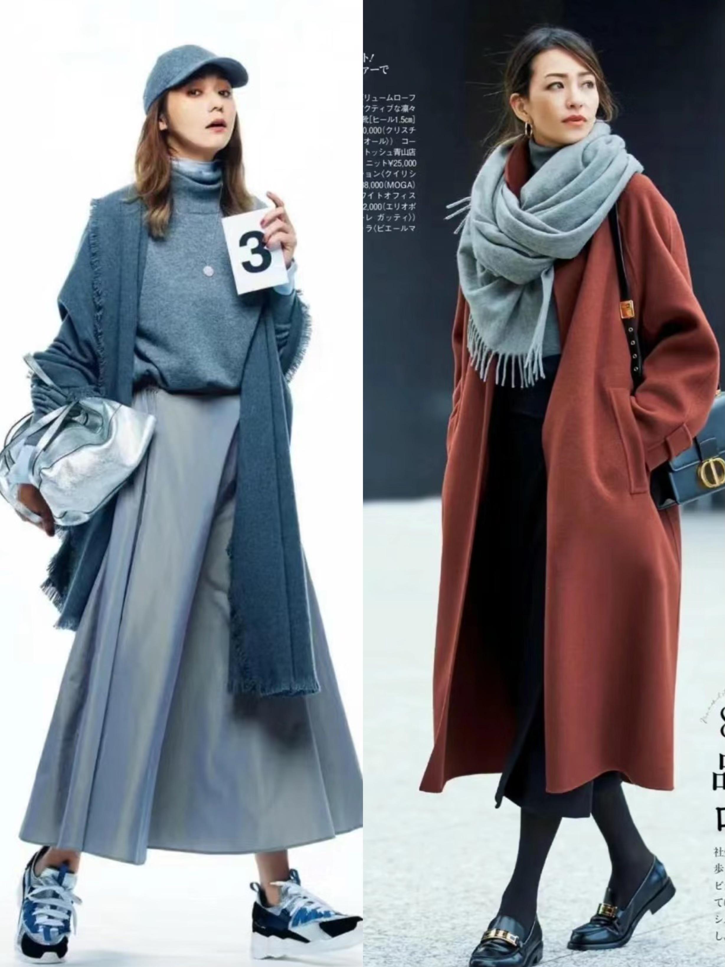 冬天裏的針織衫、T恤、半身裙、馬甲、大衣、圍巾、短靴,都是比較基礎且日常的單品。沒有豔麗的色彩、也沒有大面積的印花刺繡,就很容易穿出高級雅緻的美。