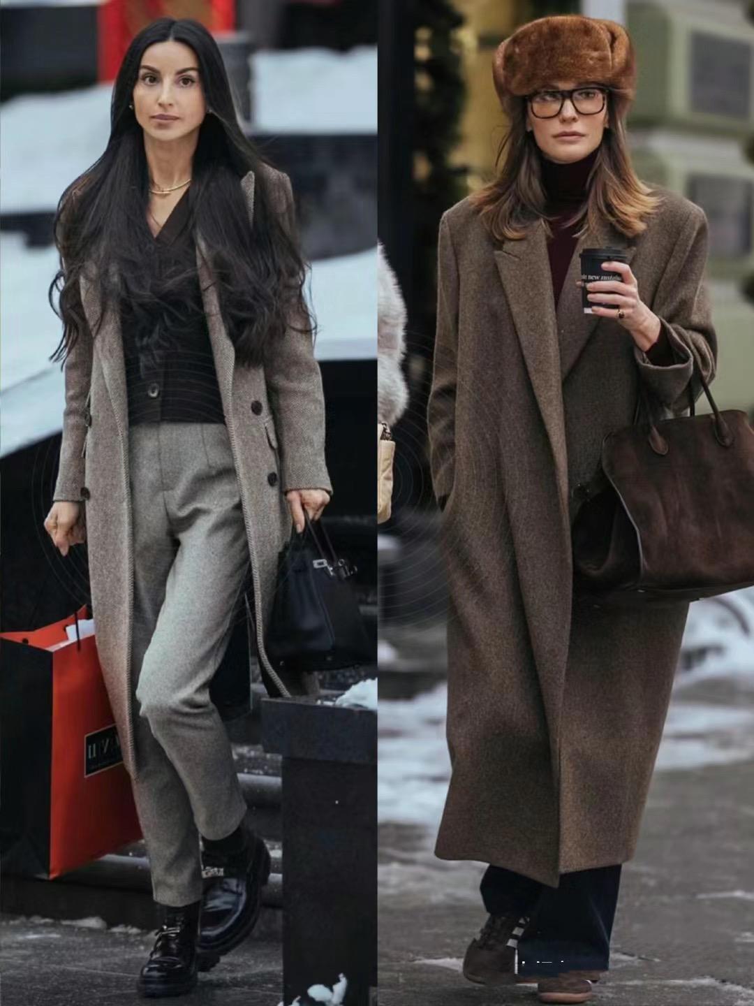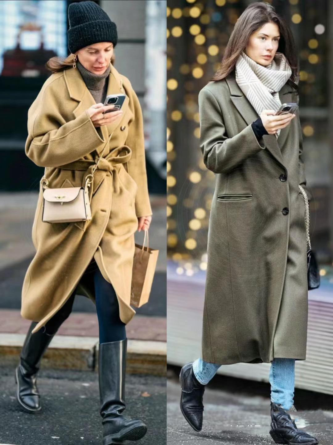 這種相對修身、且面料比較垂墜硬挺的高級感大衣,可以選擇西裝款的風格。日常通勤、休閒出街。都擁有更加帥酷拉風的美,時髦又提氣質。