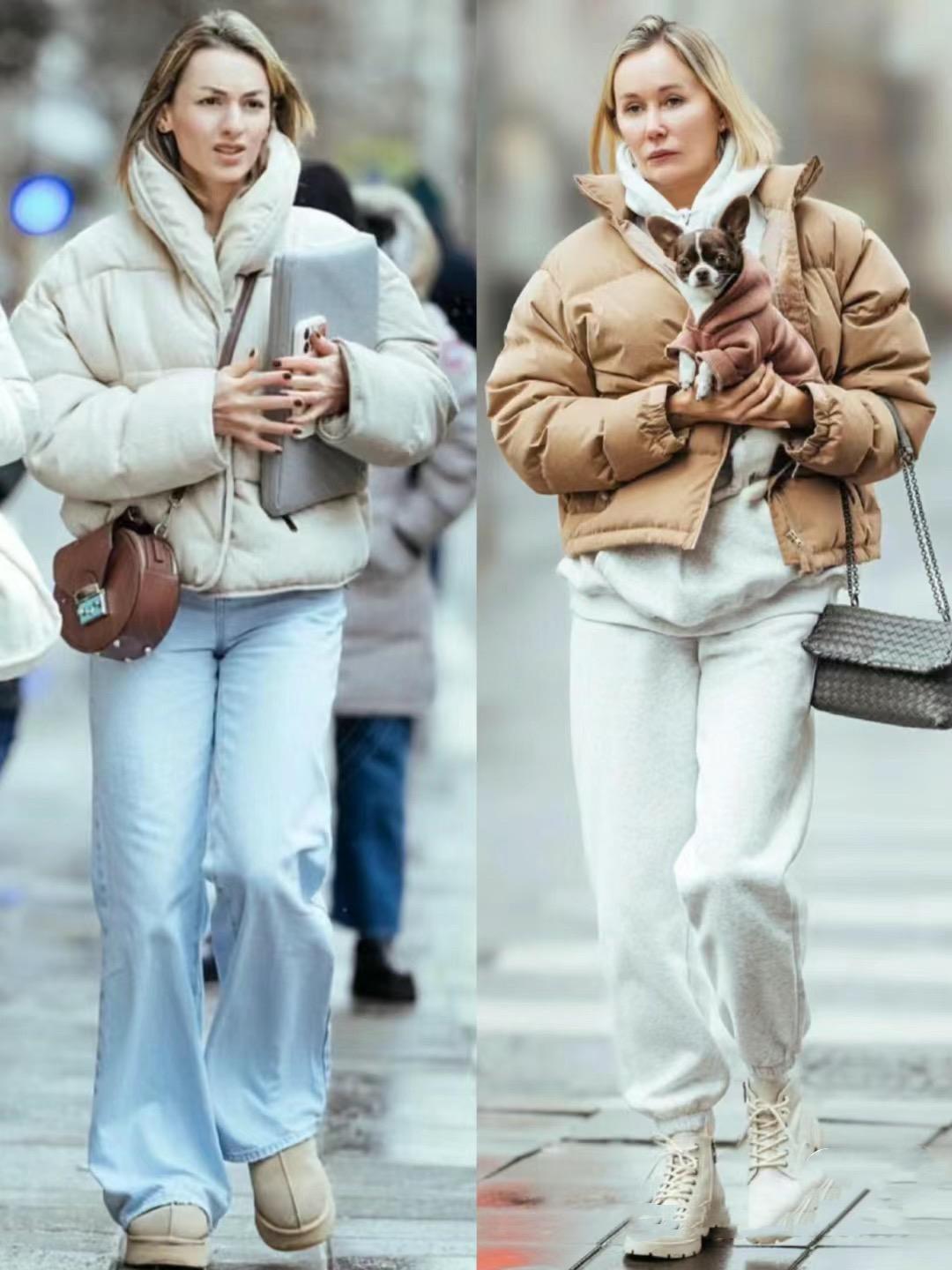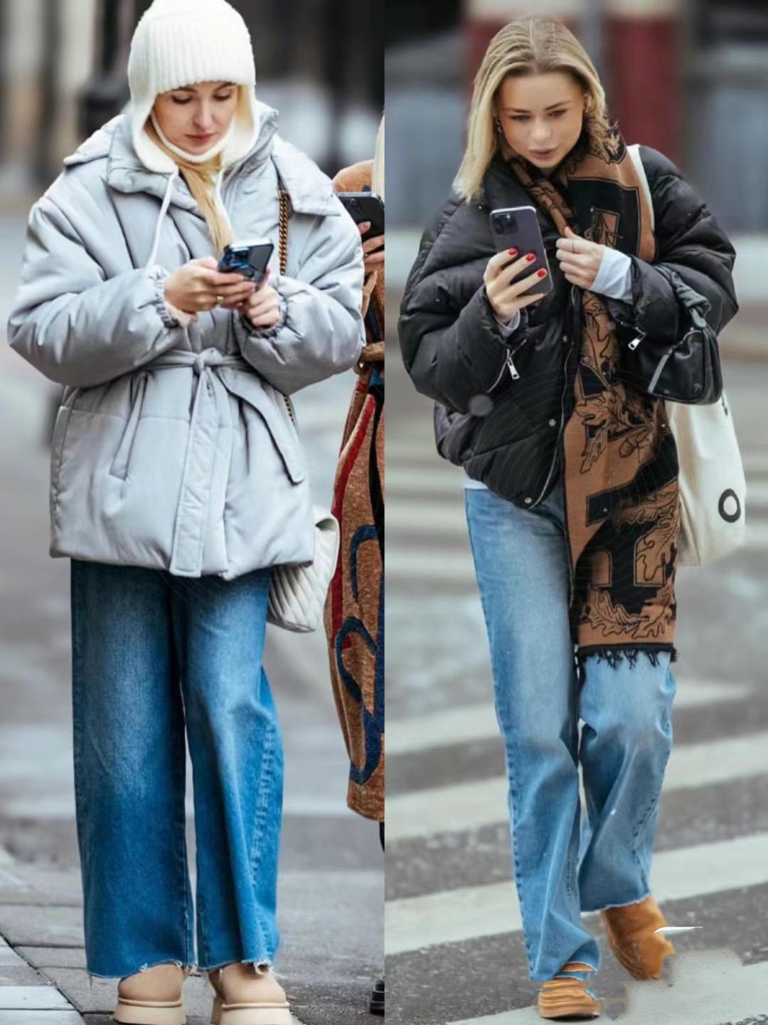 休閒風的羽絨服,相對比較寬鬆的風格、舒適度和保暖性都不錯。直接搭配一條直筒的牛仔褲來穿着,簡簡單單就很體面。而且直筒牛仔褲,經典的藍色系,百搭又減齡。
