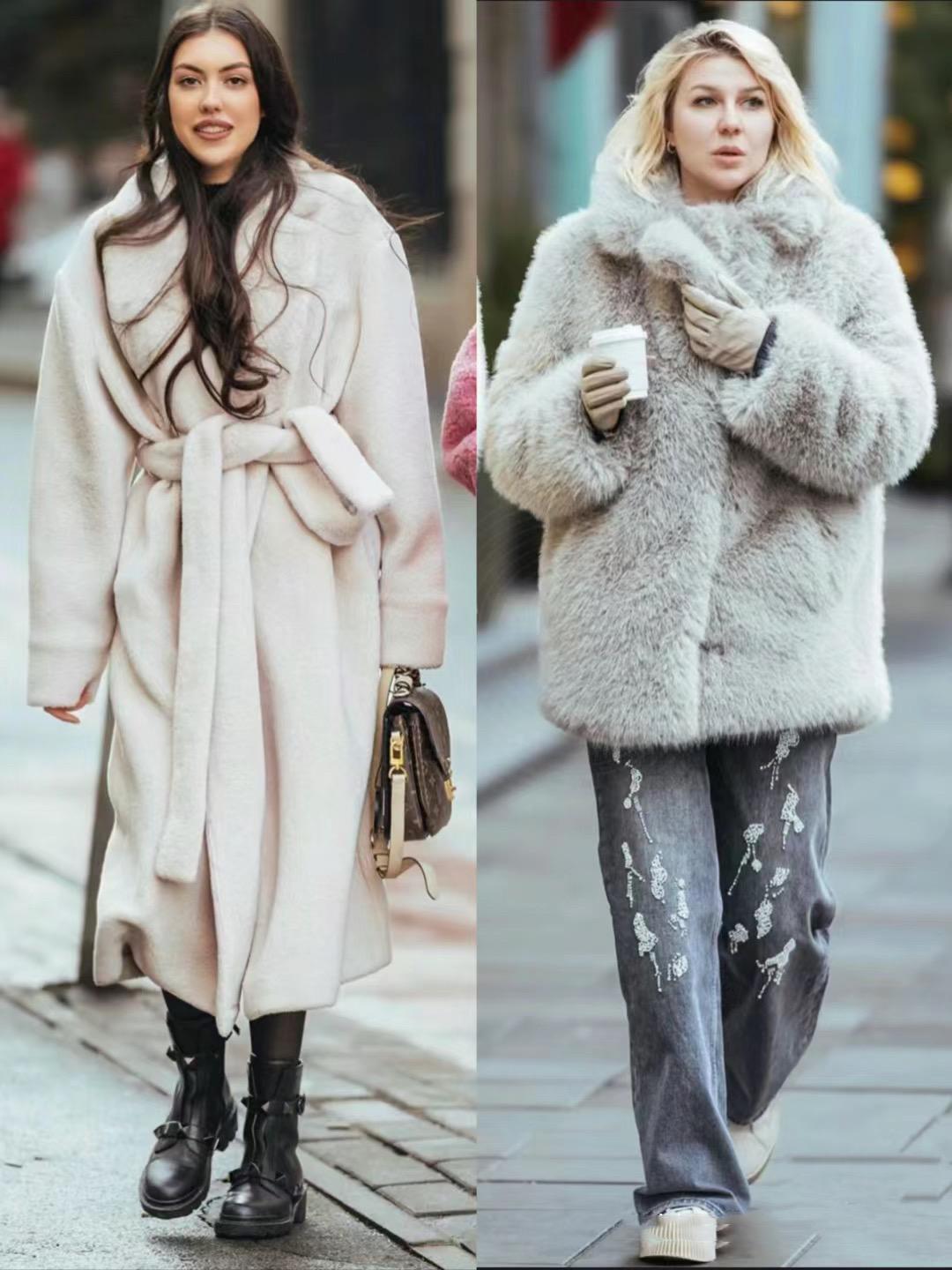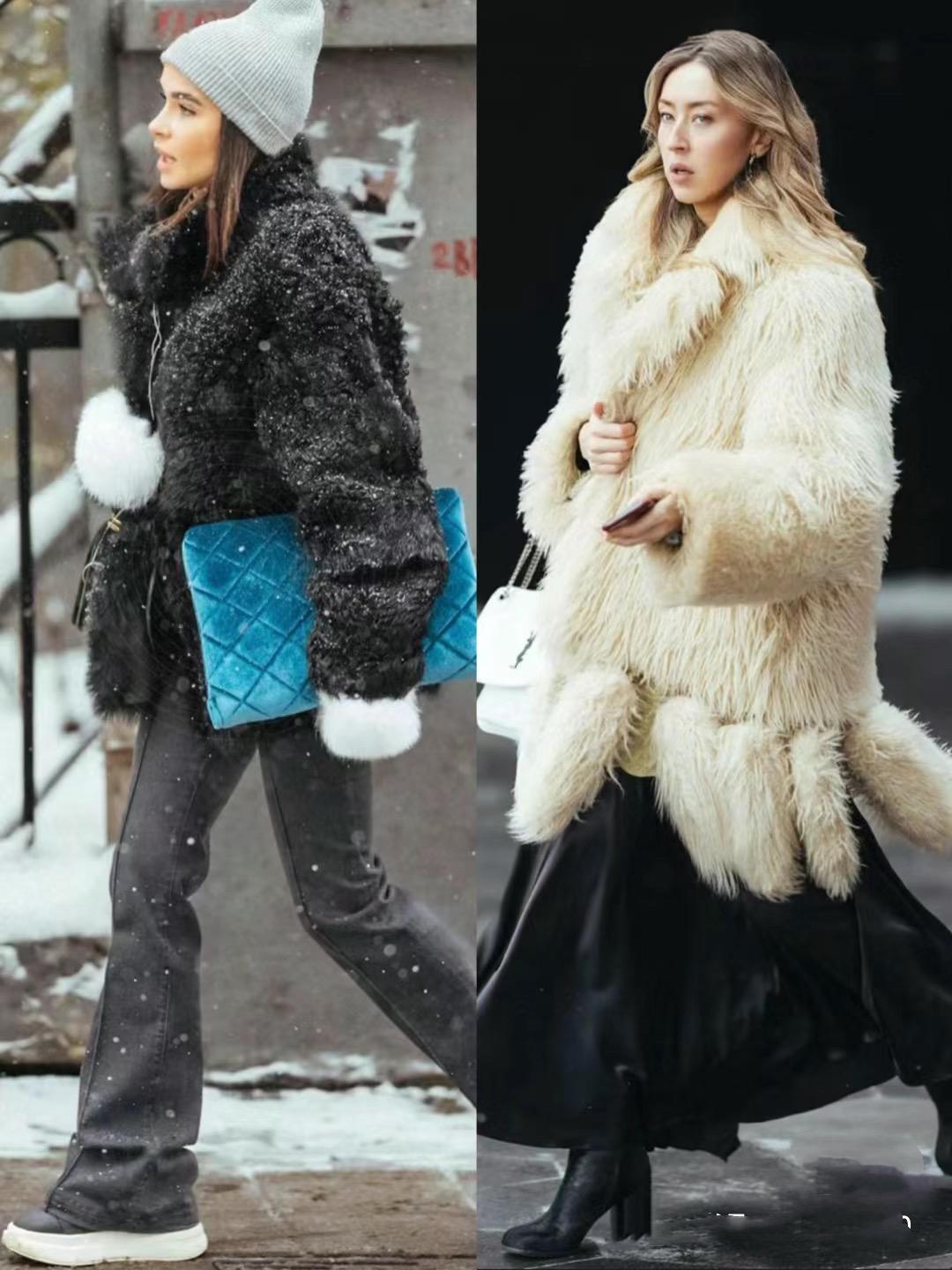 不管是長款的羊羔絨大衣,還是短款的皮毛外套,都是非常保暖又大方的單品。如果個子高挑一些,就可以穿着長款的毛絨大衣。如果個子沒那麼高,選擇及腰的短款也不錯。