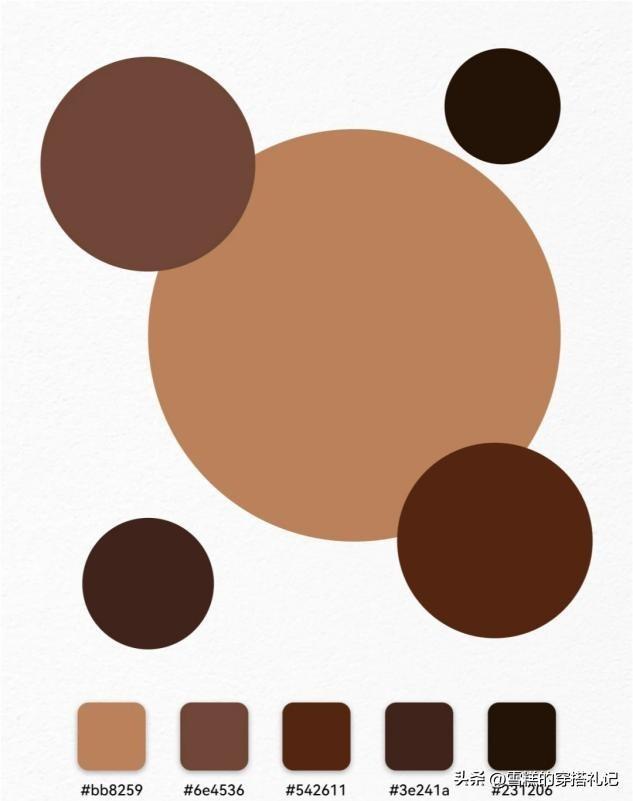 當我們運用美拉德色系的時候,會選用一種顏色大面積的使用,這種顏色就是主色調,膚色偏黃,黑的女生抓住棕色系的色相,可以幫助你很好的弱化線條膨脹度,比較偏成熟大方的穿法,不會讓你的造型顯得廉價。