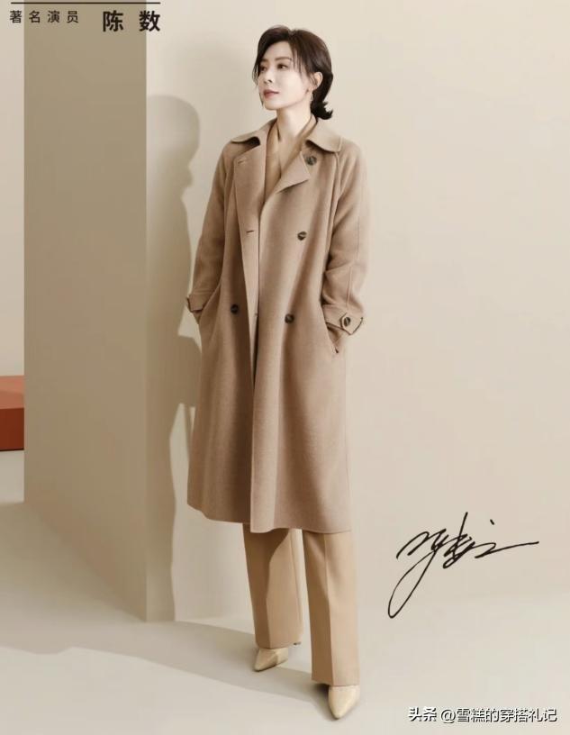 一、看陳數大衣搭配卡布裏褲,高級時髦