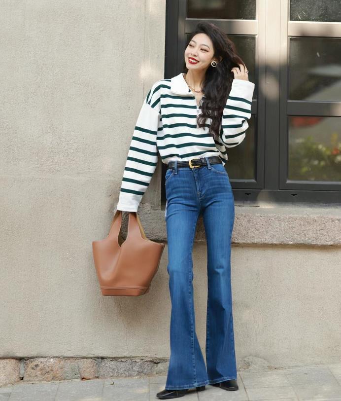 2024年流行的褲子中,又怎能缺少了微喇牛仔褲?超顯氣質的款式,寬鬆的褲腿,正好可以把小腿粗的缺點隱藏起來。