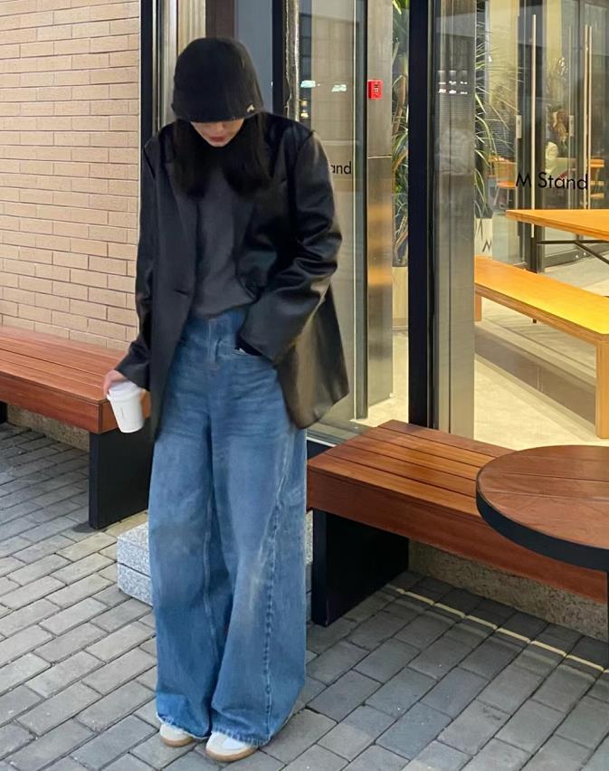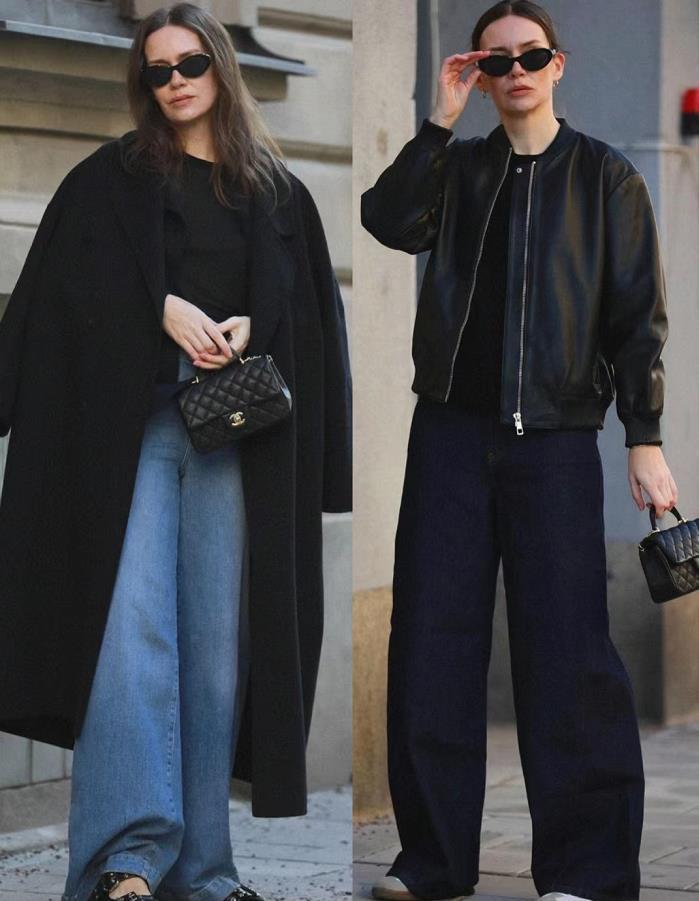 嘗試過黑色皮衣+牛仔闊腿褲的組合,大概就懂得它們有多搭了,寬鬆的褲型,適合大多數的身材。