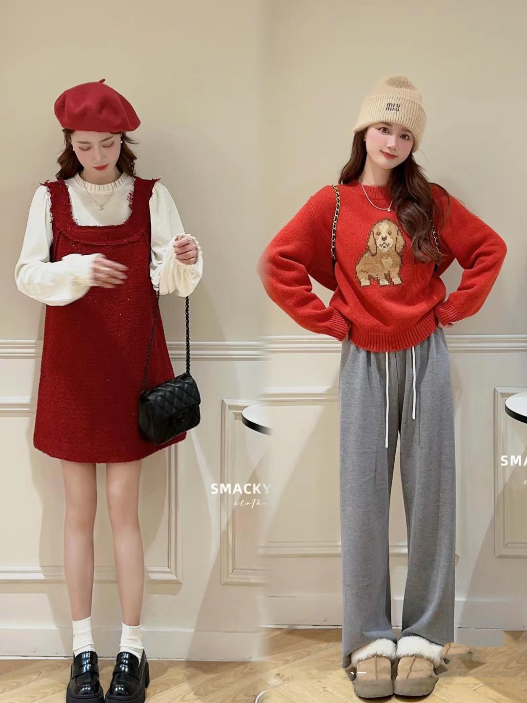 在新年的時候,小個子女生不管是選擇紅色毛衣、還是選擇紅色針織衫,都可以搭配高腰的闊腿褲來穿着。