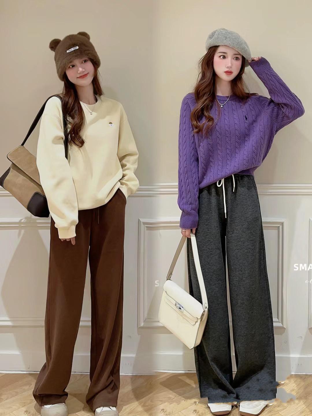 如果在北方地區,或者是比較怕冷的姑娘,我們冬天可以嘗試穿着加絨加厚的闊腿褲。高腰的闊腿褲,配一雙厚底的鞋子,穿起來也更加利落顯高。