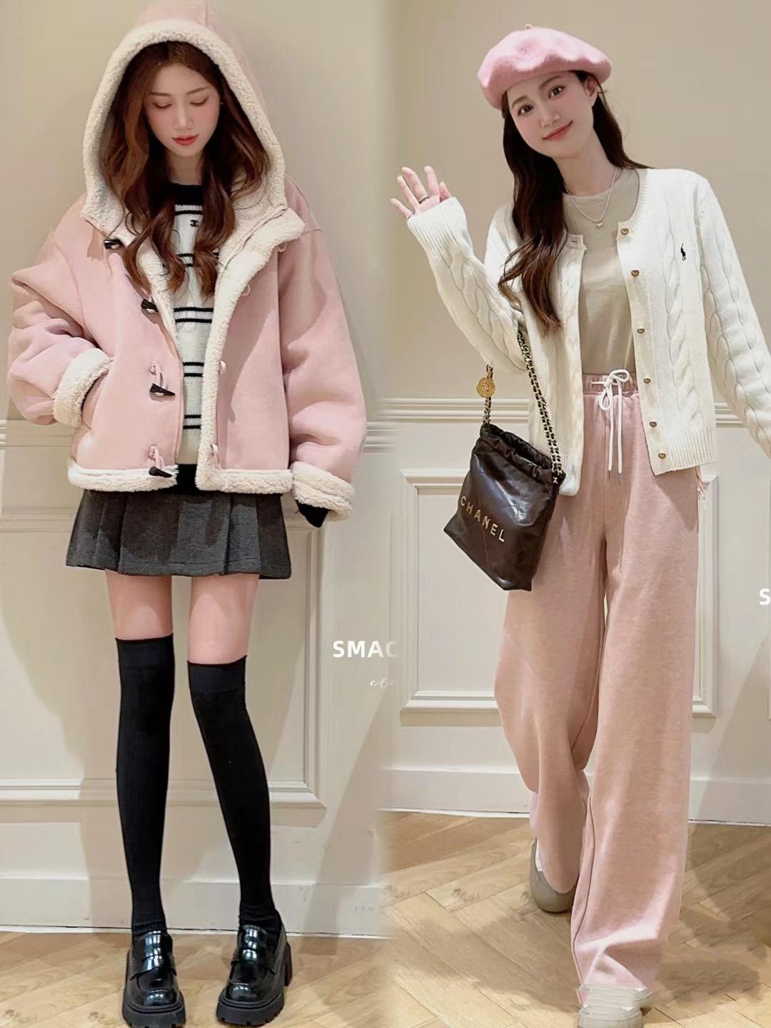 不管是絞花元素的毛衣、還是短款的皮毛一體外套,都可以塑造出更甜美時尚的氛圍感。這種短款的上衣、我們可以搭配高腰的半身裙或者直筒褲來穿着,大氣又耐看。
