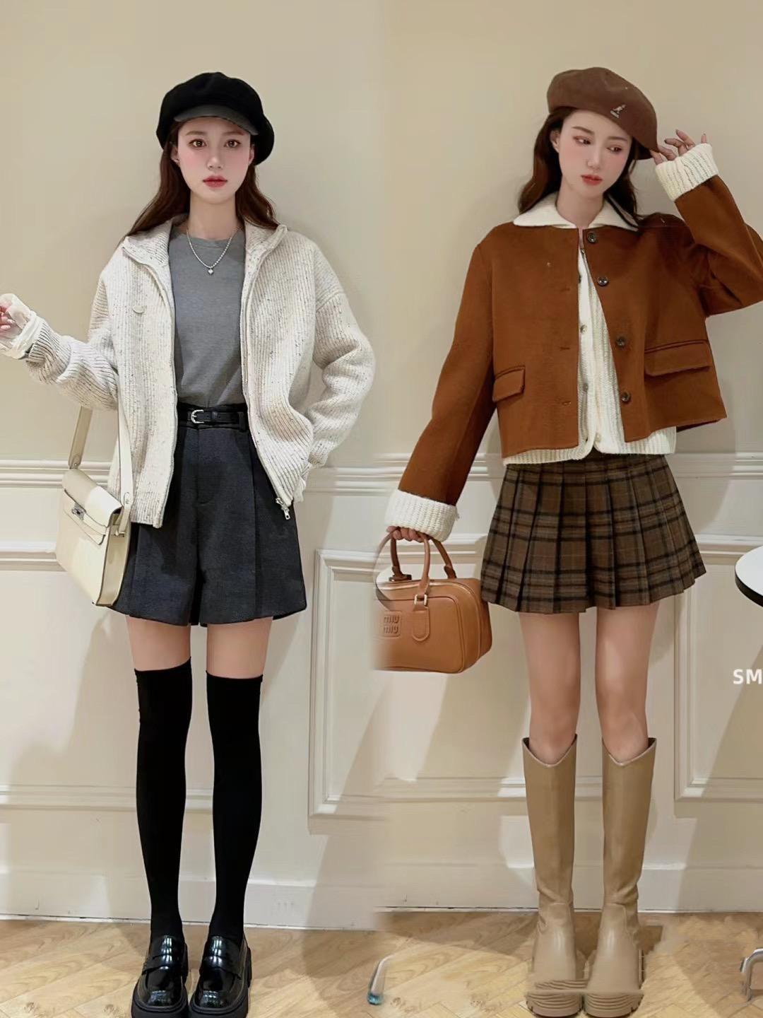 稍微寬鬆一點的短款羽絨服,可以配短款的半身裙來穿着,一雙加絨加厚的打底褲,保暖性就有了保障。選擇打底褲的時候,可以選擇克重稍微高一點的款式,穿起來也更保暖。