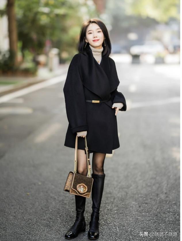 如果你的身材狀態是屬於五五分的比例,那麼建議大家在選擇大衣進行搭配的時候,首要的長度其實可以控制在我們臀胯以下的部位,但是在膝蓋以上這個時候就可以搭配長筒靴的系列結合起來,以此來襯托下身失蹤的穿搭方法。當然這個時候的長筒靴也可以是厚底的版型。