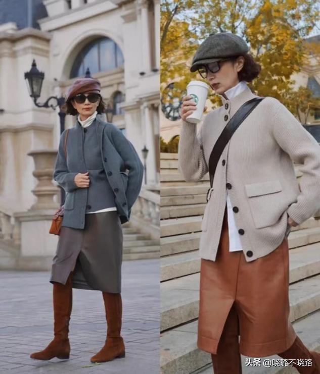 用半裙來搭配大衣,穿法設計其實很豐富,長款大衣配闊擺裙,是最基礎的穿法,很適合身材偏胖的女人。如果你想讓造型的女人味更強一點,可以學習三木媽媽的短款大衣配包臀裙的穿法,對比出明顯的腰臀曲線感,穿衣成熟感更強。