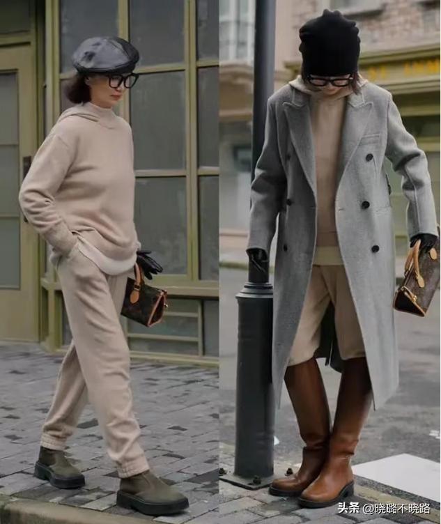 衣褲造型的同色系組,是一種比較適合穿衣小白的穿法,冬季這樣的着裝組合,上衣一定要有立體的曲線感,而且能夠適當的展示出層疊穿搭的效果,着裝纔會亮眼。