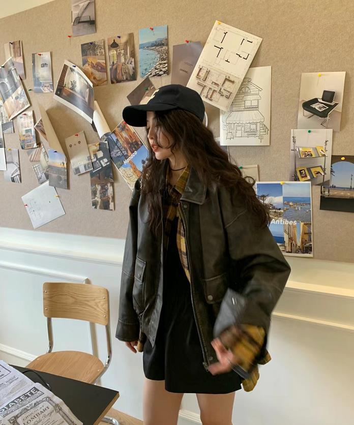 格子襯衫外套疊穿皮衣外套,是真的時髦到飛起啊,記得要稍微將裏面的襯衫露出來一點,營造出層次感,頗有小心機又不失細節。
