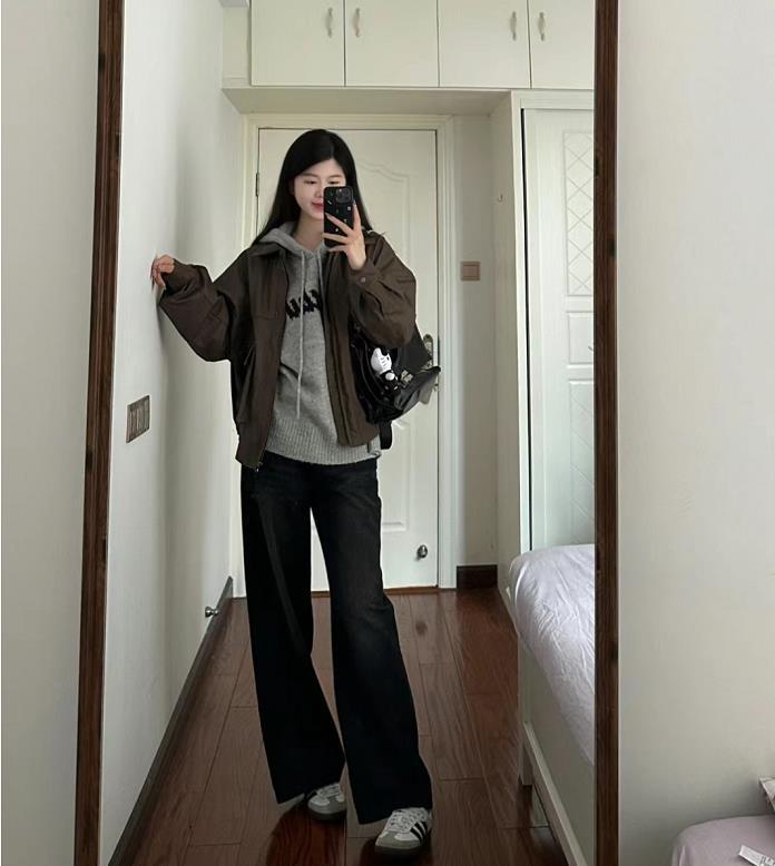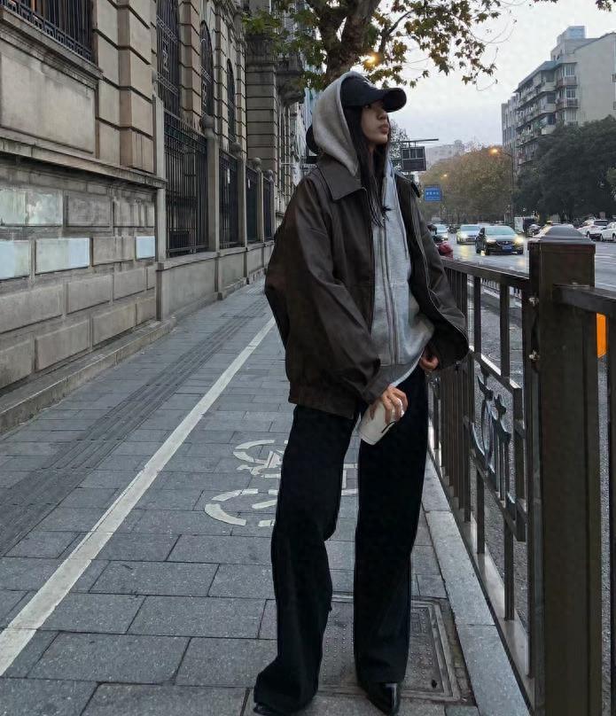 這樣穿是真的好好看啊,休閒隨性的一套,黑色羊羔絨外套,就比較經典百搭吧,內搭灰色連帽衛衣外套,灰色+黑色的組合,可顯層次了。