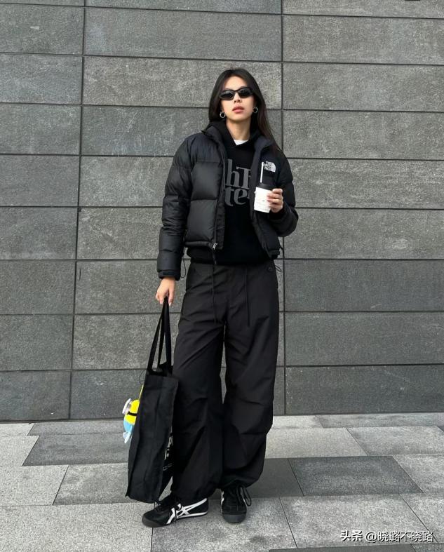 在整體的穿搭中,一定要有着明顯的深淺過度,這樣纔不會連成一片,顯得過分厚重累贅,比如這種淺色系的羽絨服配黑色的經典公主褲,有淺有深,組合起來更加纖細苗條,但是羽絨服儘量選擇啞光的杏色、米色等,富有質感不說,穿起來也會更加溫柔有氣質一些,黃黑皮也可以很好的穿出顯白感。