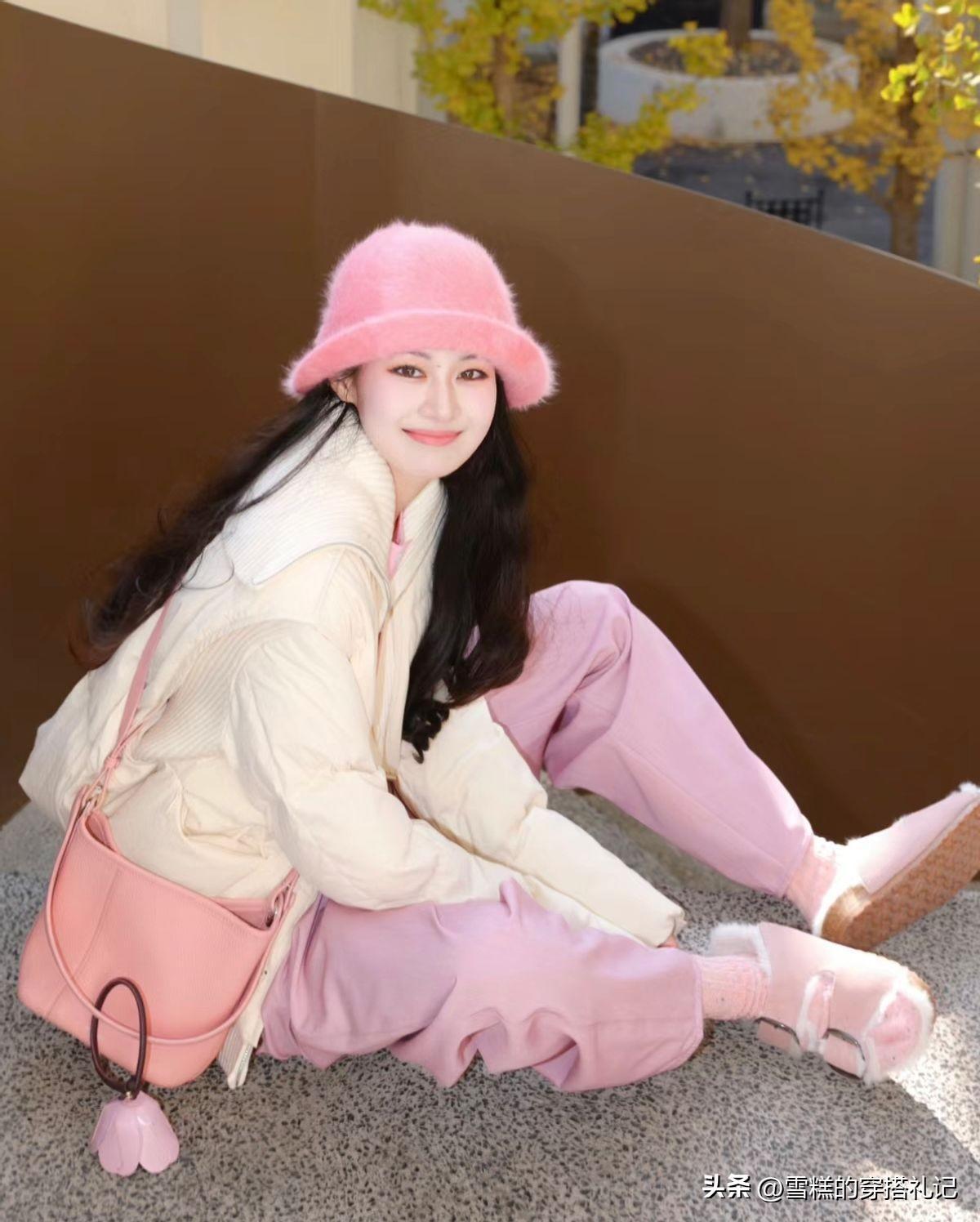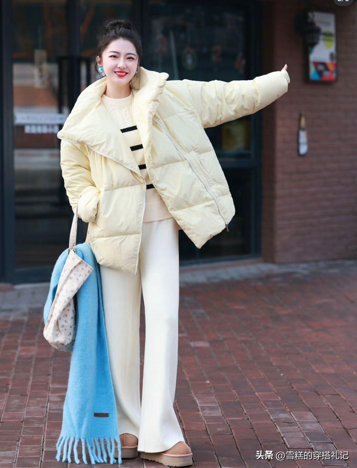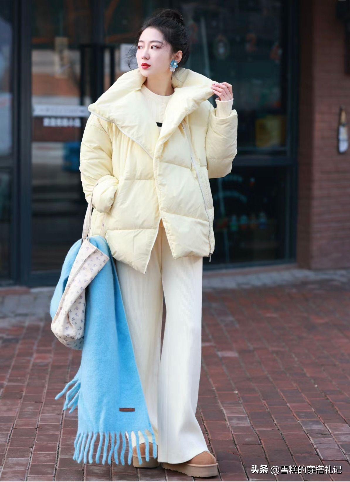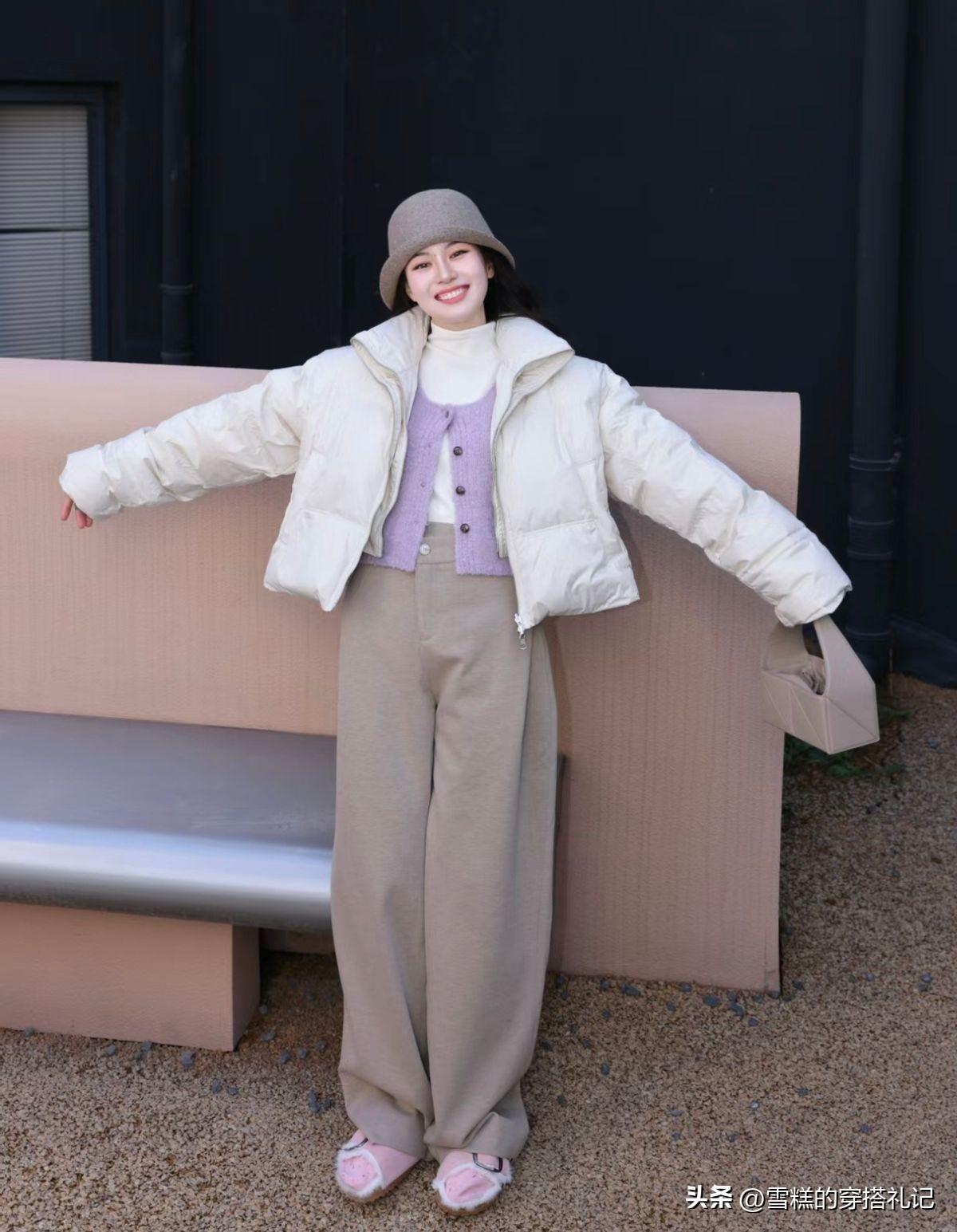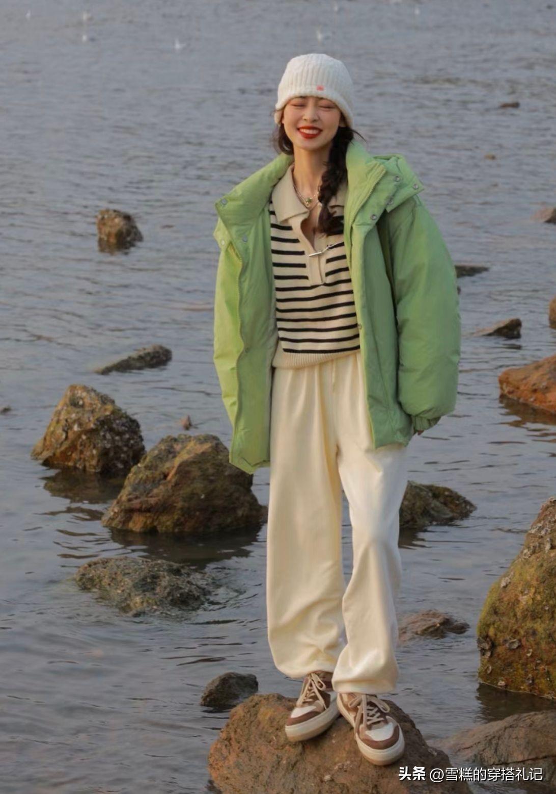 這樣的穿搭組合當然也可以很明顯的就凸顯出來優雅又隨性的效果很適合30多歲的女性進行優選。這個時候的懶人褲就一定要選擇米白色或者是其他淺色且穩定的彩色系列,我上半身所選擇的棉服也儘量是基礎的淺色,又或者是飽和度較低一些的顏色呢。