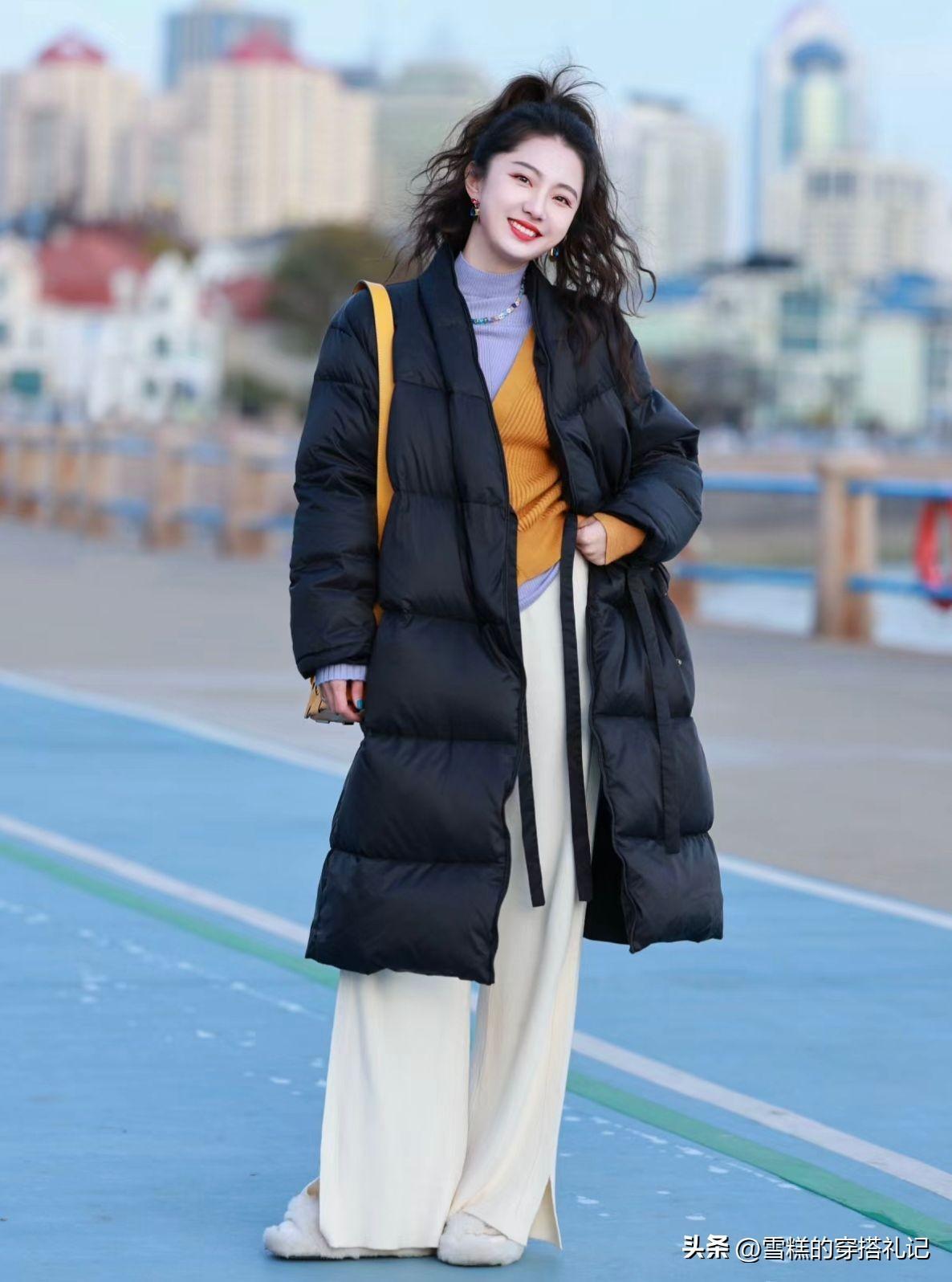 那麼在搭配長款的棉服時候,就推薦大家可以在一些天氣偏冷又或者是休閒的時候進行運用了這個時候我們的身材比例以及整體的顯瘦效果也是一定要注重的喲。建議大家可以選擇短款的上衣,結合長款的懶人褲。