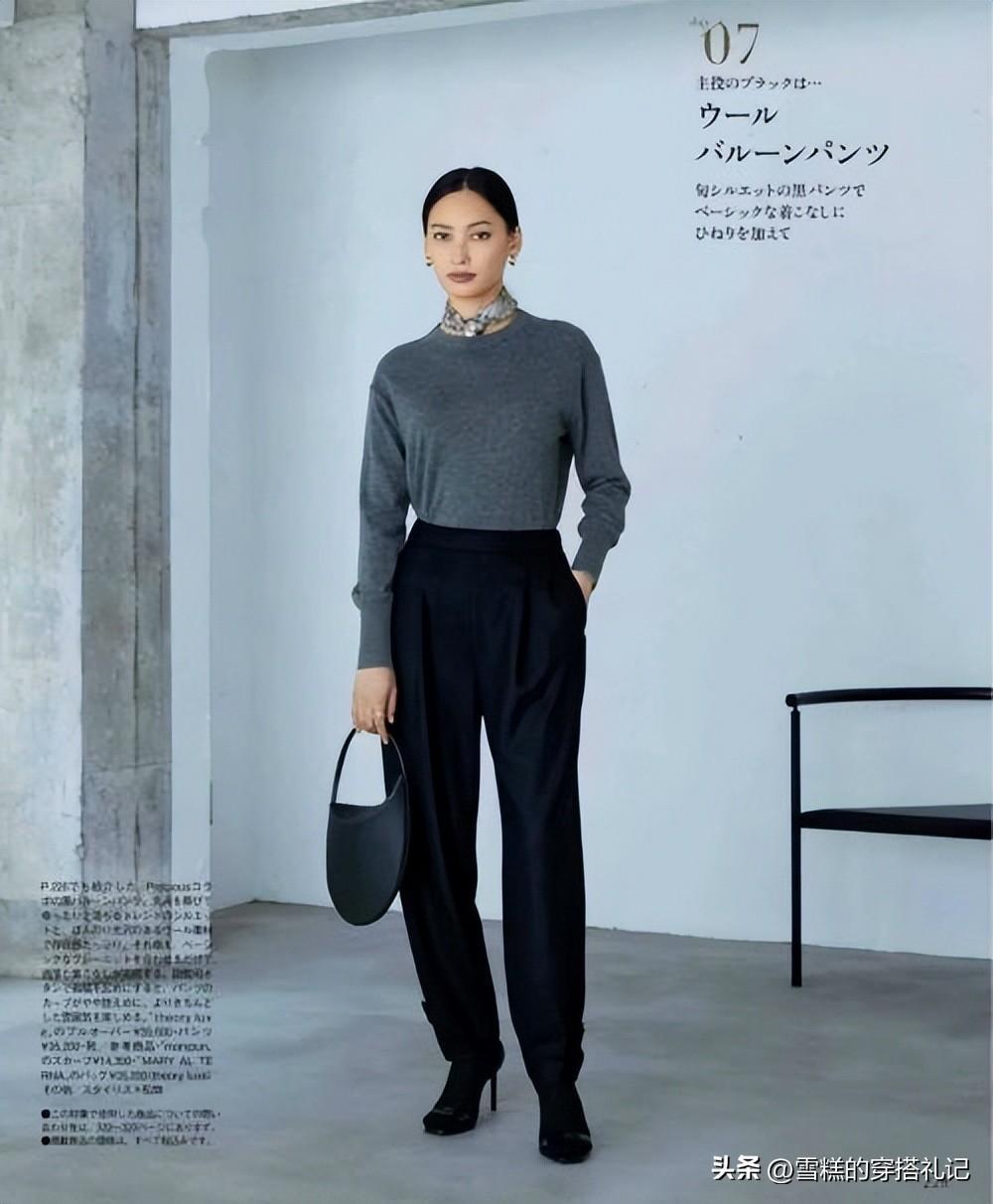 黑色是基礎色中最霸氣的一個顏色,因此用黑色來搭配藍狐灰給人的感覺就是氣場十足,並且這樣的配色真的很顯瘦,是一組高質量的職場通勤配色。
