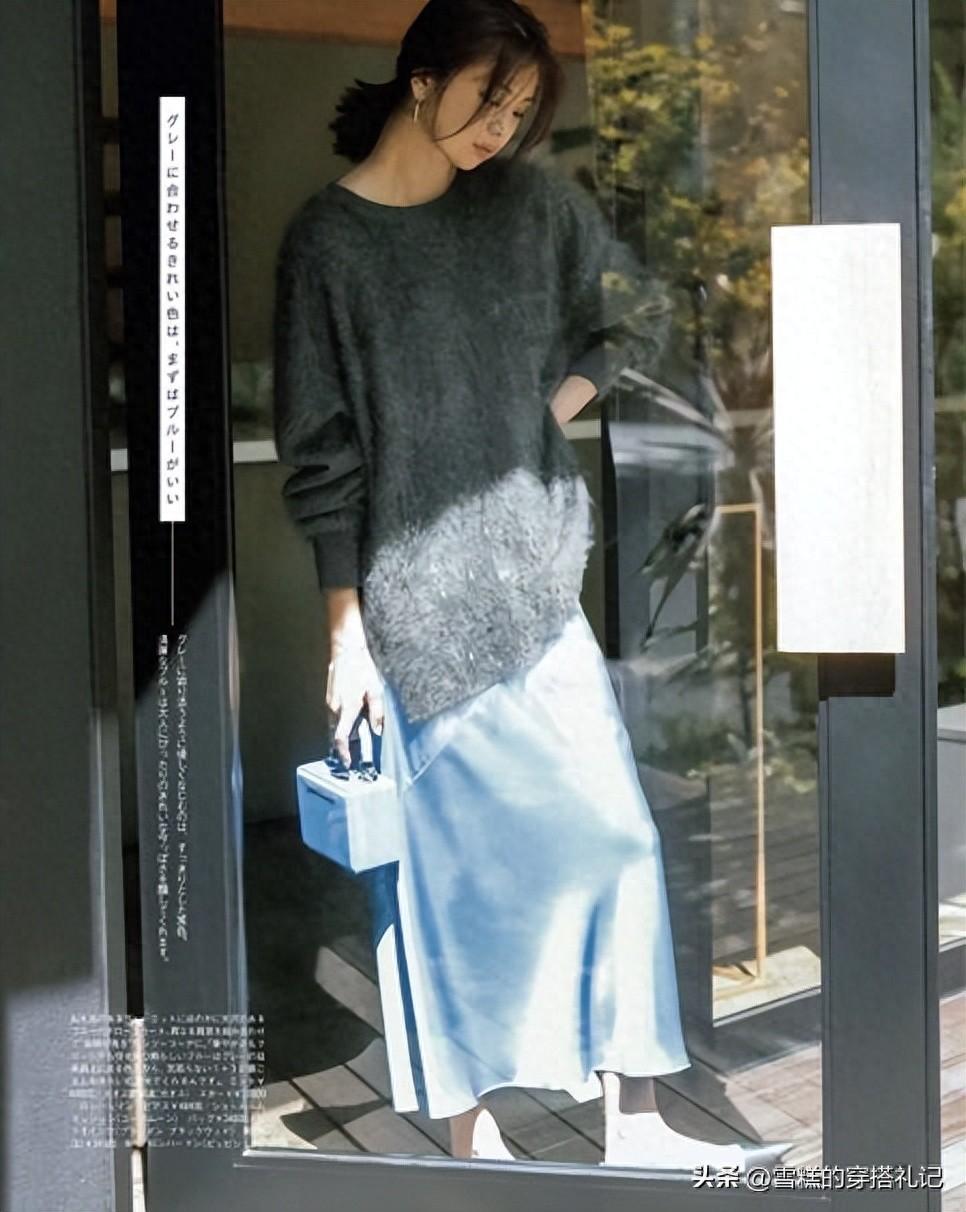 比起柔紗,我認爲綢緞面料更高級,更適合做春季色彩的承載,並且光澤感能讓基礎色看起來更加吸睛,作爲其他單品的疊穿,光澤感面料也能塑造不錯的層次感。