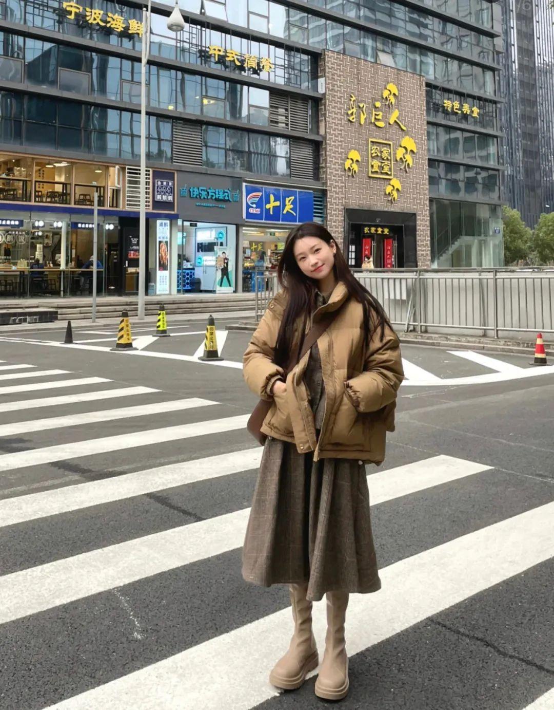 就算是到了過年,也不能因爲美放棄溫度了,想要又暖又美,羽絨服+裙子就可以滿足了。保暖的同時又很減齡,內搭選擇裙子正好可以削弱羽絨服帶來的臃腫感。