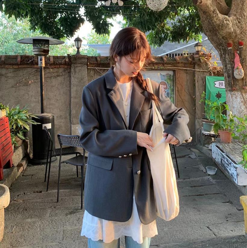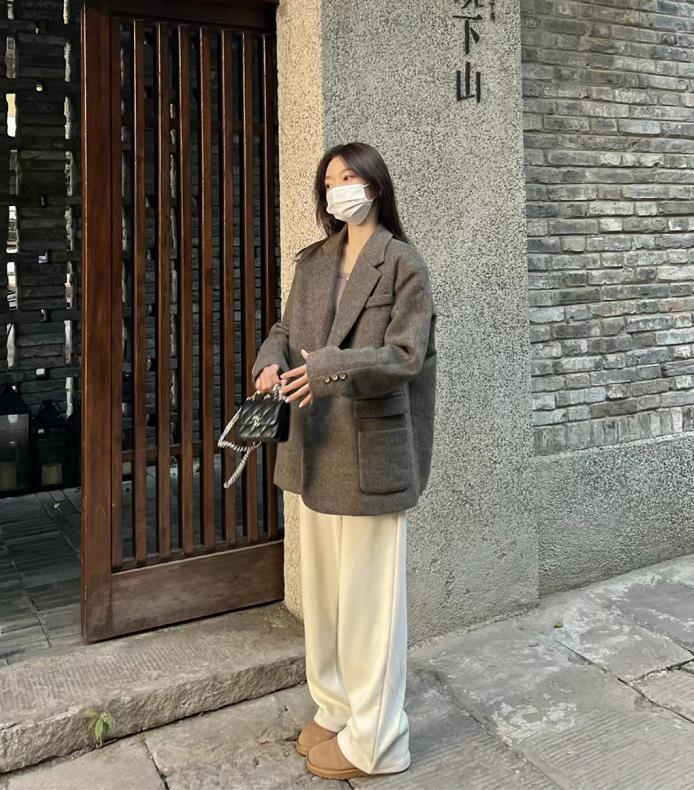 韓劇女主標配的穿搭,這一身不管是上班通勤,還是逛街都很合適呢,毛呢材質的棕色西裝外套,挺厚實的面料,應當早春正好。