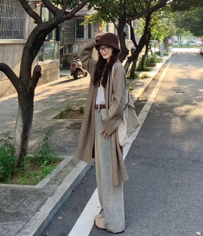 韓系復古風的穿搭,就真的是很不錯的風格,這件長款針織開衫,穿起來更多了幾分隨性感。下裝還是配一條牛仔直筒褲吧,顯瘦又顯腿長。