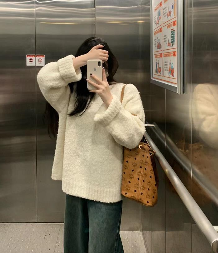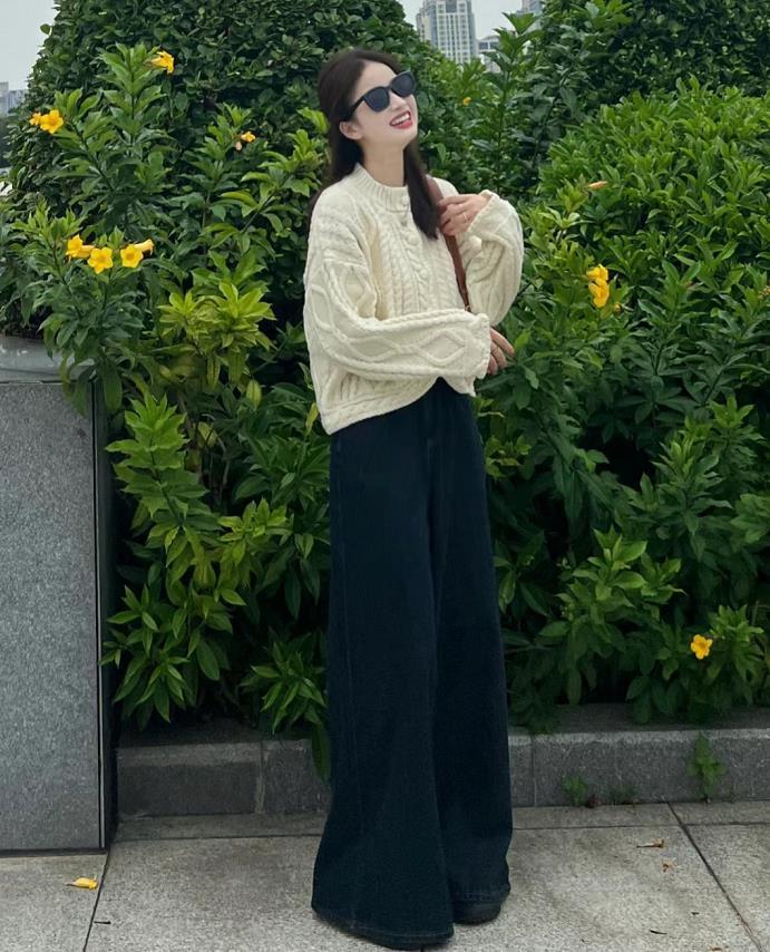 喜歡這種軟軟糯糯材質的白色毛衣,穿起來可顯溫柔舒適了,搭配起復古闊腿牛仔褲,真的好喜歡這種休閒慵懶的感覺。